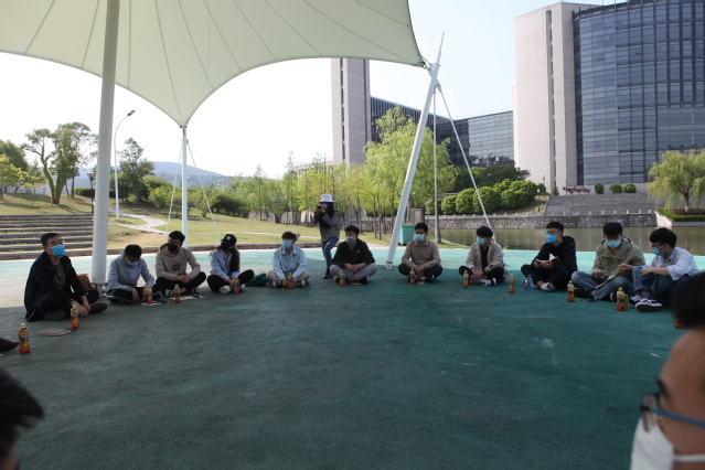 4月29日下午,南湖校区图书馆旁、镜湖畔,安全学院20多名本科生和研究生围坐一圈,就“安全”话题展开了热烈讨论。这是安全学院品牌活动“书记茶座”本学期的第一次活动,主题是“疫情之下话‘安全’”。
