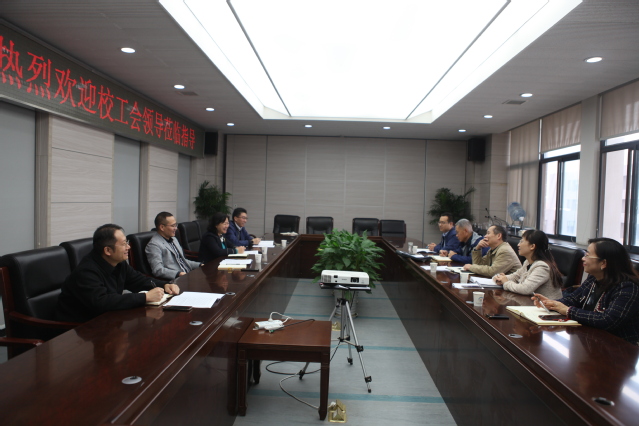王思华书记表达了对章毛平主席一行来学院指导工作的欢迎,并对校工会对二级学院教职工的关心表示感谢。李忠辉主席就学院工会的基本情况、工会活动开展情况、福利工作、二级教代会和工会会员大会工作等方面进行了汇报。