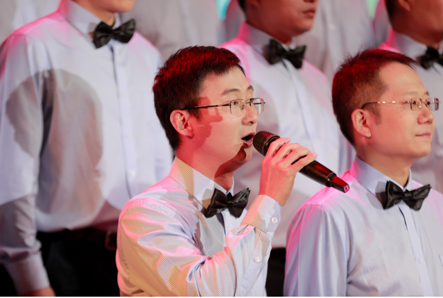 “我们祝福你的生日我的中国,愿你永远没有忧患永远宁静;我们祝福你的生日我的中国,这是儿女们心中期望的歌。”这是近60名安全学院教职工在舞台上对祖国的深情歌唱!这是全体矿大安全人对祖国日益强大的骄傲之情!“我爱你,中国!“整齐有力的念白,久久回荡在整个科学馆,震撼着在场的每一个人,喊出了所有人的心声!