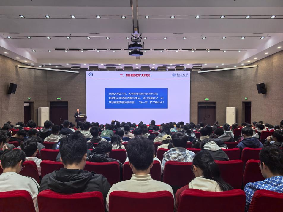 章毛平教授围绕矿大是一所什么样的大学”“如何度过矿大时光内容展开系统讲解,梳理并生动再现了学校筚路蓝缕、砥砺前行的奋斗画卷结合安全工程学科的发展历程,章毛平教授深刻阐释了安全人所肩负的时代使命与精神内涵。他鼓励同学们珍惜大学时光,夯实专业基础,注重全面发展,不断超越自我,努力成长为有理想、有本领、有担当的高素质专门人才。在互动环节,同学们围绕专业学习、科研实践、生涯规划等内容踊跃提问,章毛平教授一一予以细致解答,并结合学科前沿动态与人才培养规律提出建议。