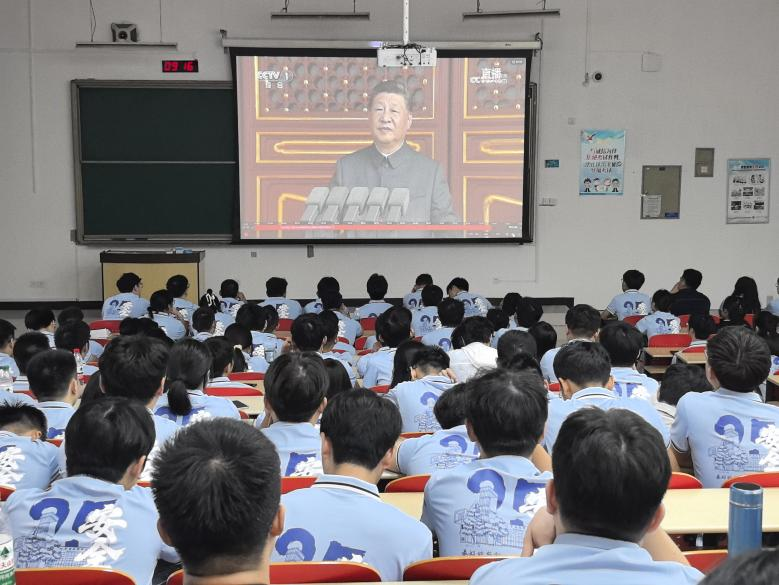 阅兵仪式的壮观场面给师生们带来了强烈的视觉冲击和心灵震撼。庄严的仪式、整齐的方阵、先进的装备共同构成了一场生动的爱国主义教育课,令师生们在沉浸式体验中感受国家强盛,坚定理想信念。