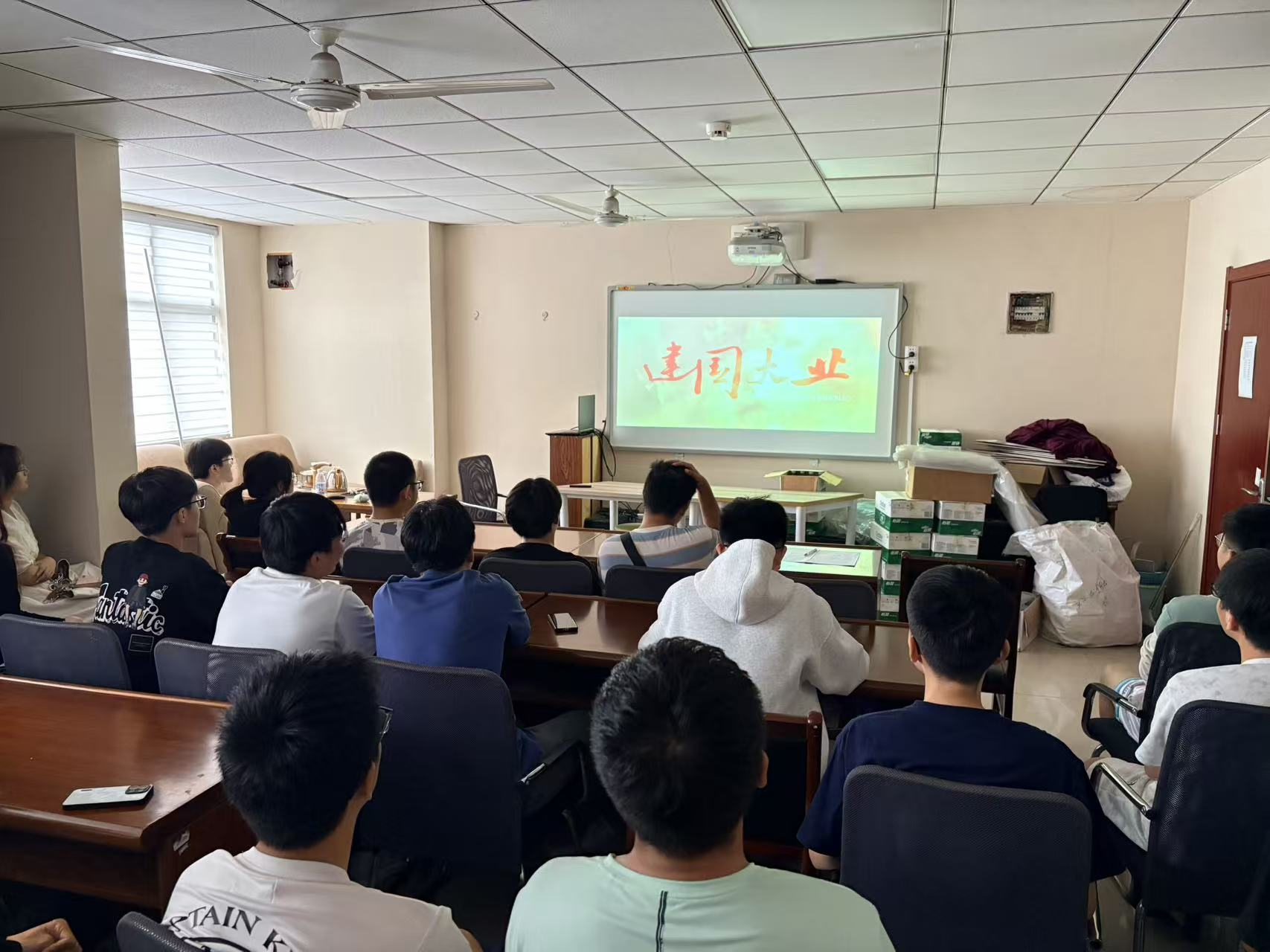 影片《建国大业》聚焦中华人民共和国诞生前后的波澜壮阔历程,生动刻画了以毛泽东、周恩来等为代表的中国共产党人,在动荡年代中为民族独立、人民解放不懈奋斗的英雄群像。观影过程中,现场氛围庄重而热烈,同学们全神贯注,跟随剧情回溯峥嵘岁月,深刻感受先辈们在艰苦环境下的热血与激情。现场气氛庄重,秩序井然,影片中真挚的情感与厚重的历史感召力,引发广泛共鸣。