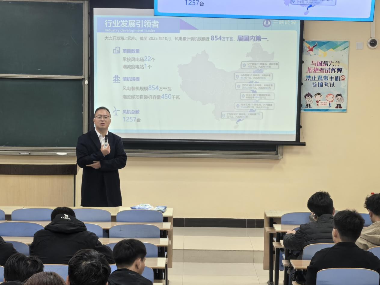 邀请三峡能源集团代表来校举办新能源行业认知专题讲座。活动由学院学工办主任、研究生辅导员刘世通主持,2026届本科及硕士毕业生代表参加。