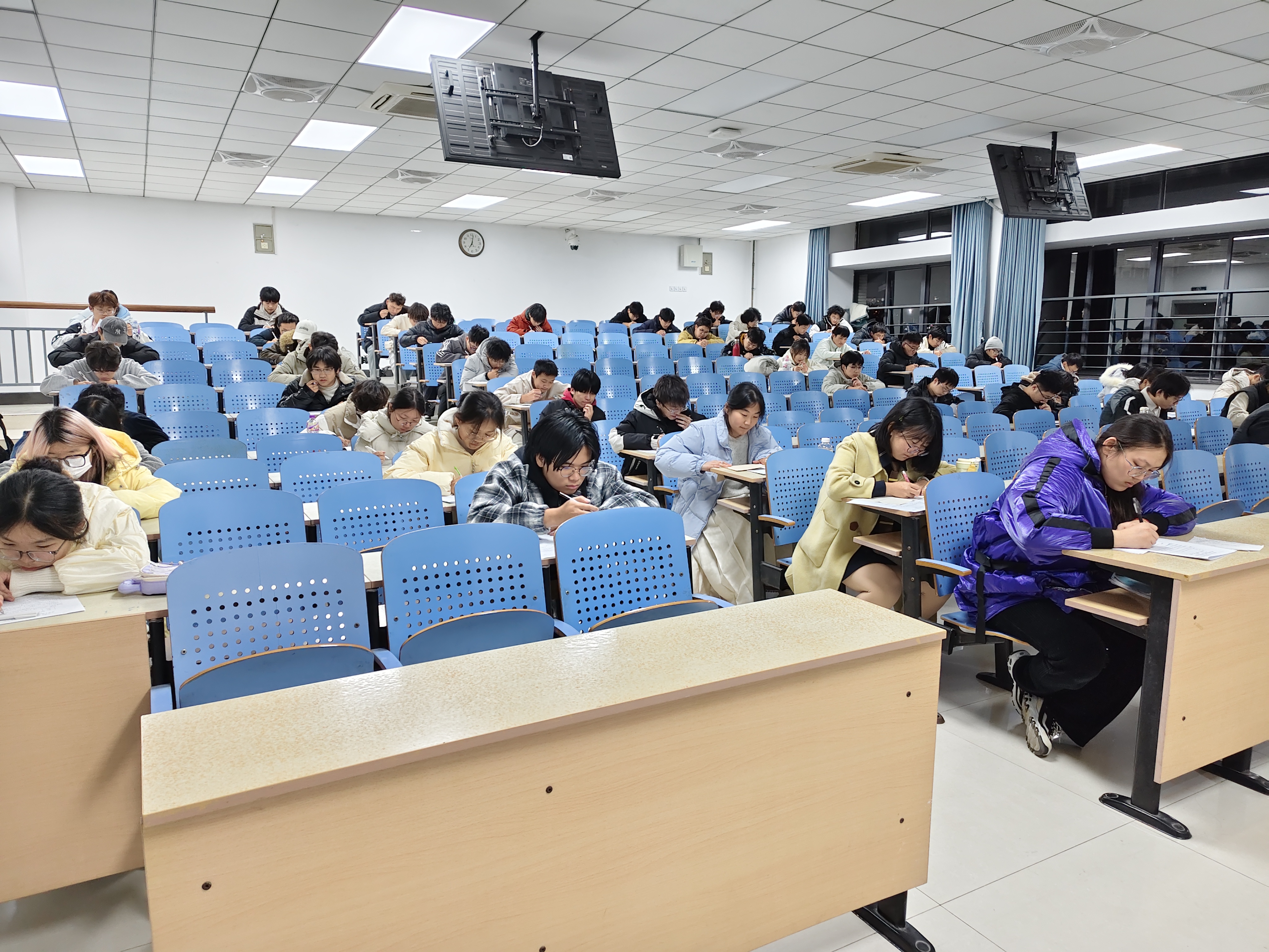 本次模拟考试严格遵循正式考试流程,学院明确监考职责与考试纪律,由高年级负责监考工作,切实保障考试过程的公平、规范与有序进行。同学们在监考人员引导下有序签到、放置物品,晚上七点考试准时开始。考试过程中,同学们专注审题、认真作答,考场秩序井然,展现出严谨务实的学习风貌。