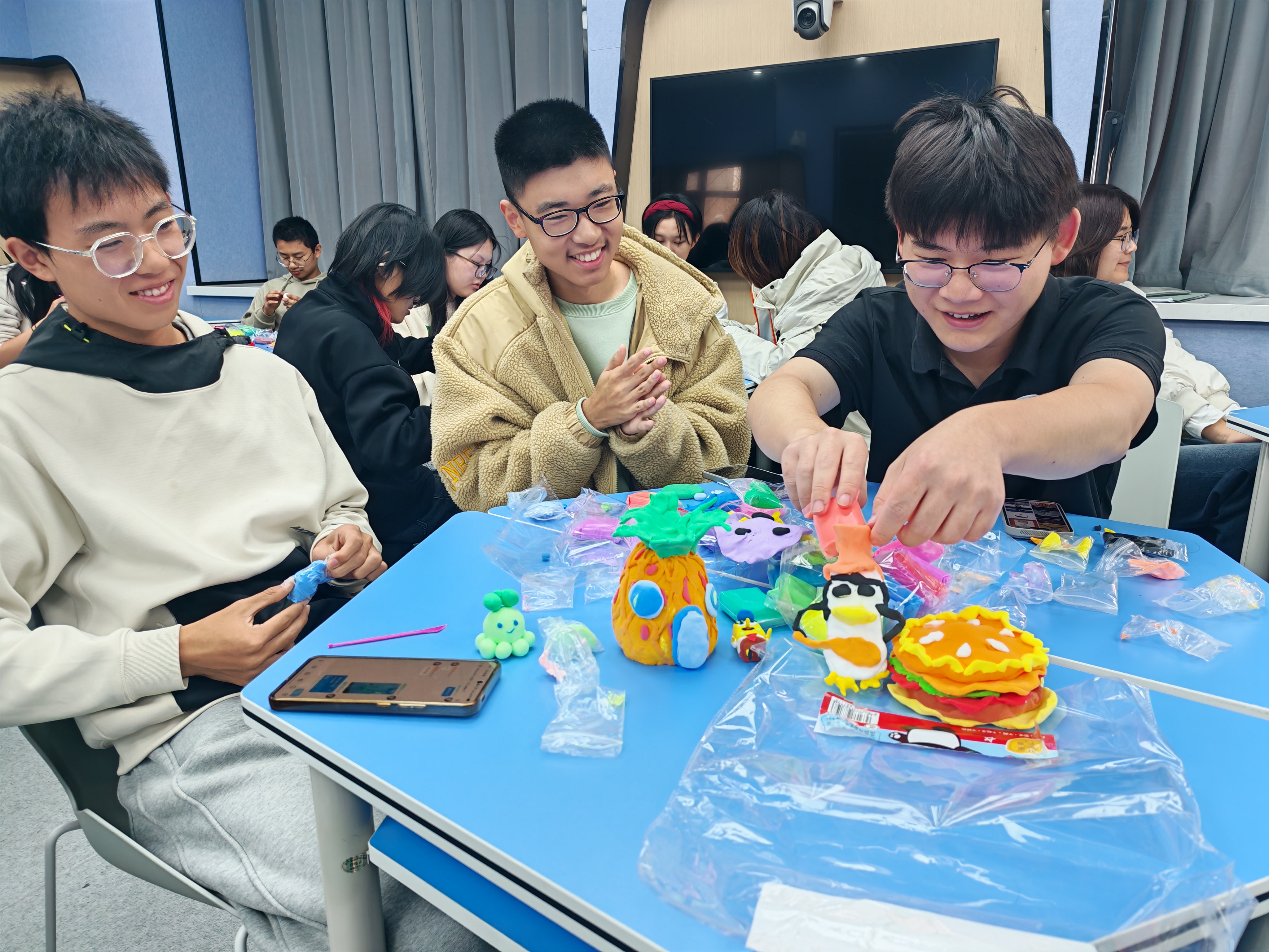 活动中,工作人员讲解了黏土制作的基本方法与注意事项,帮助同学们快速掌握创作技巧。现场气氛热烈,创意纷呈,同学们充分发挥想象力,认真投入创作,逐步将黏土塑造成花朵、动物、卡通人物等各具特色的作品。现场氛围轻松融洽,大家在交流中激发创意,在动手中体验乐趣。活动最后,同学们展示成果并合影留念,分享创作心得。