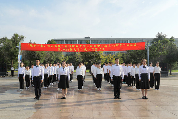 承办的“逐梦青春,强国有我”庆祝新中国成立72周年升旗仪式暨2021级大学生成人宣誓仪式在国旗广场举行。校领导刘波、宋学锋、曹德欣、赵建岭、李强、蔡世华,校党委常委、校长助理张万红,校党委常委、组织部部长张万海出席仪式。校团委书记谢发国主持仪式。院长王恩元,副院长郭梅香、王亮,院党委副书记孙留涛,学工办主任、团委书记刘世通,21级辅导员卢笛,新发展党员代表,2021级青年团员代表共同参加了升旗仪式。