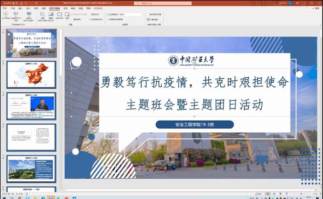 3班团支书胡珉源同学在会议最后开展了主题为“勇毅笃行抗疫情,共克时艰担使命”的主题班会,与同学们一起学习了学校关于疫情防控的“七个坚持”要求,希望同学们一同与学校打好这场疫情防护战。