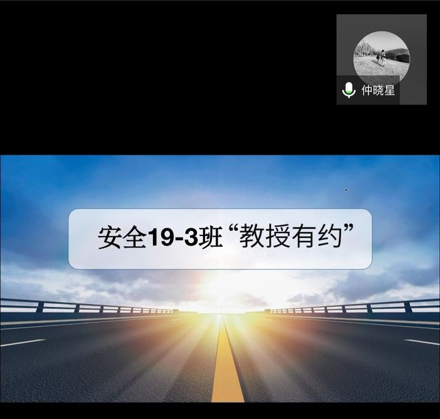 第三十七期“教授有约”活动在线上举行,安全学院仲晓星教授受邀作为本次活动的主讲。2019级3班全体同学通过线上会议的方式参加了本次活动。