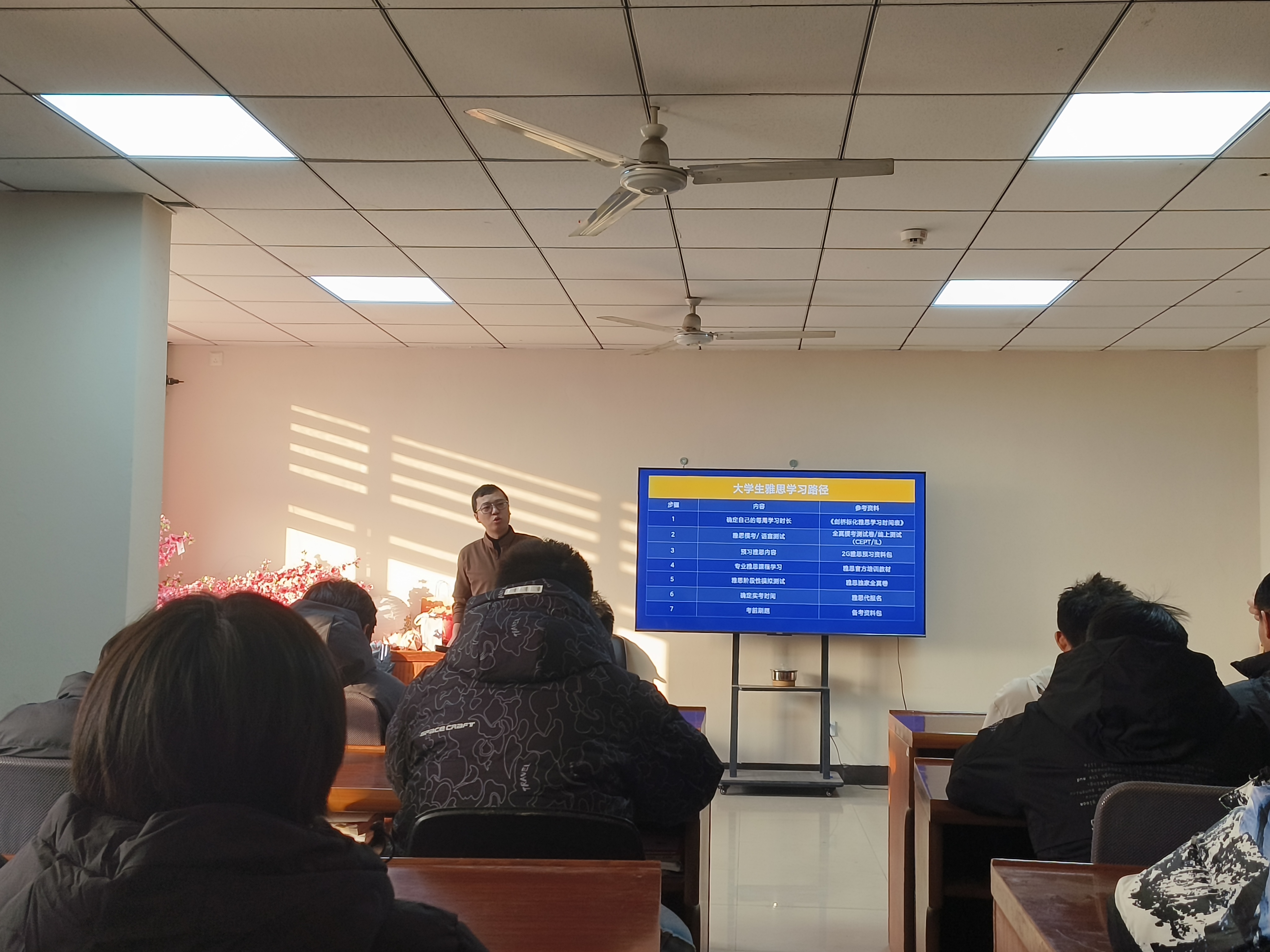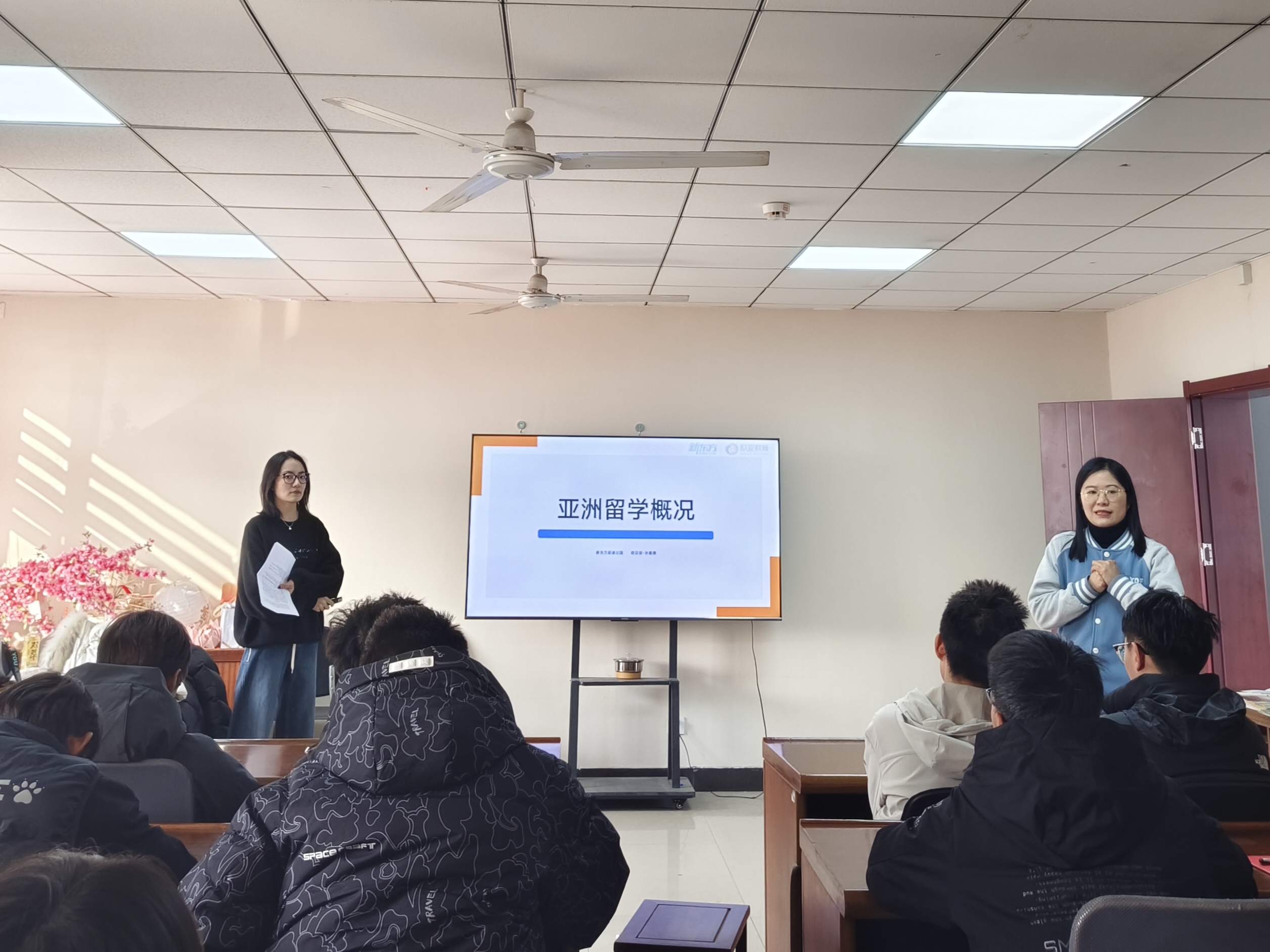 于行健书院力行轩和求是堂举办了“留学概况及英语学习技巧讲解”主题讲座,新东方国际教育的老师受邀主讲,2023级本科生积极参加此次活动。