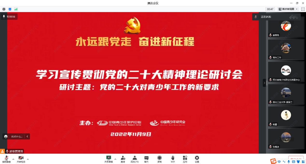 为加深对党的二十大精神的理解,11月9日下午,中国青少年研究中心和中国青少年研究会联合举办了“学习宣传贯彻党的二十大精神理论研讨会”活动,绅士会所