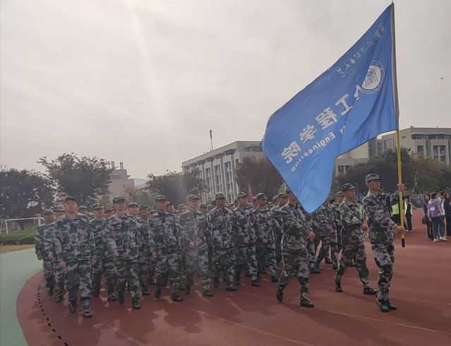 的同学们在教官的指令下,分别进行分列式,特色方阵等表演。其中共102名新生组成分列式,同学们跟随彩旗方阵和一营的队伍,踏着激昂的乐声,意气风发、蓬勃向上地向观众们展示近半个月的军训成果。在口令员的指令下高标准的完成踏步、齐步、齐步转正步、正步转齐步等一系列军事动作。“拼搏团结、博学厚德、卓越创新、开放包容”的口号声响彻训练场,整齐划一的步伐无一不展现着安全人“追求卓越,成就非凡”的精神品格和军训风貌。