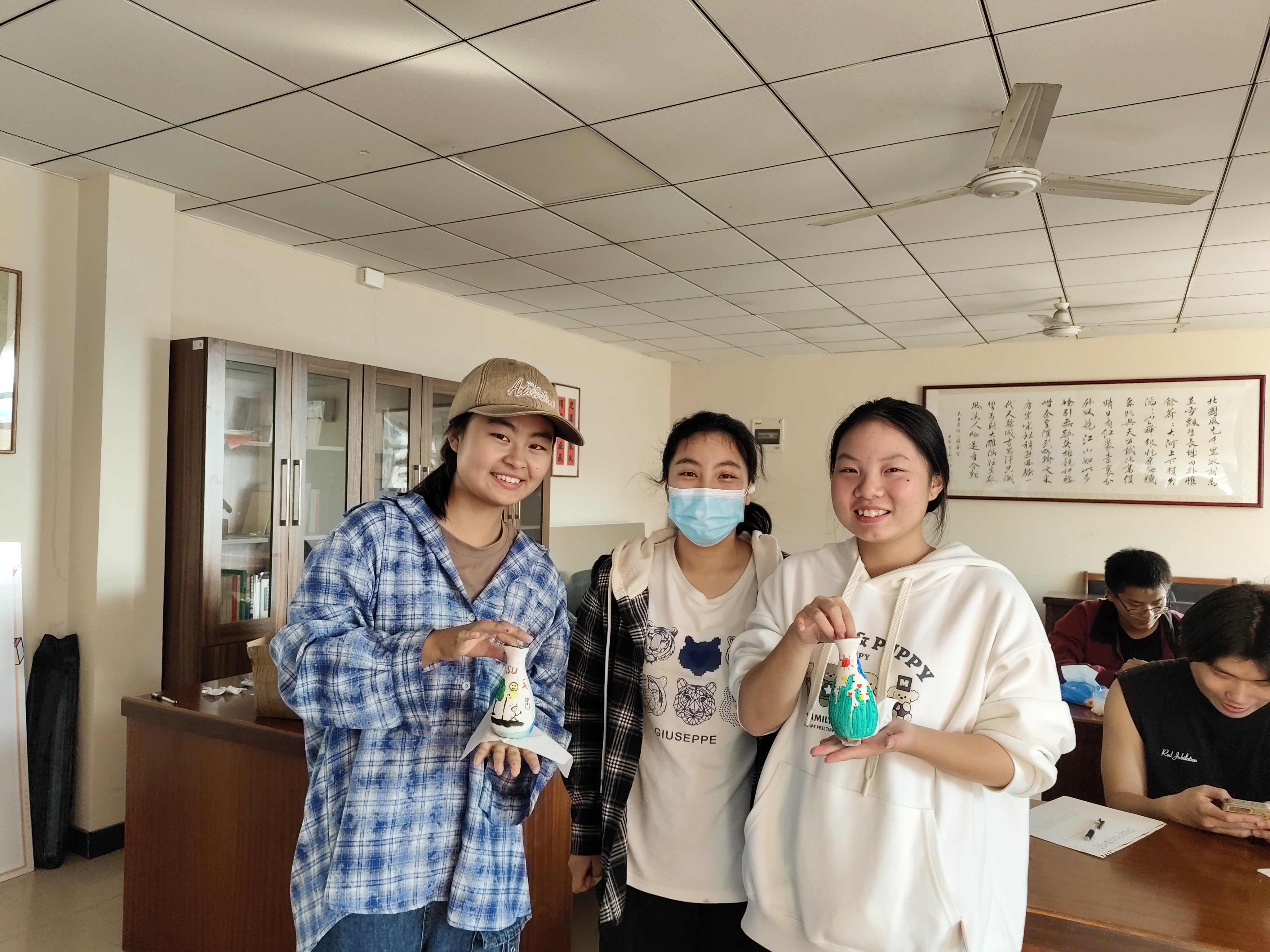 活动开始,由组织者讲解中华民族传统文化陶瓷彩绘的相关知识,使同学们对陶瓷彩绘有进一步的了解,之后由主办方统一提供空瓶子与颜料,不限彩绘的主题,同学们充分发挥自己的想象力,利用颜料与画笔在瓶子上进行涂鸦与创作。在当今快节奏的生活中,同学们慢下脚步,静下心来在陶瓷瓶上自由地挥舞画笔,尽情释放压力,用色彩来传递内心的情感,以图案来表达自己的想法,将喜怒哀乐等各种情绪呈现在陶瓶上,实现了情绪的有效表达与释放。沉浸在彩绘的过程中,暂时忘却外界的纷扰,专注于当下的创作,深刻体会陶瓷彩绘其中深厚的文化底蕴,认真完成一件件精美的陶瓶彩绘作品,使同学们获得了满满的成就感,同时也缓解了心理压力,获得了心灵的治愈。
