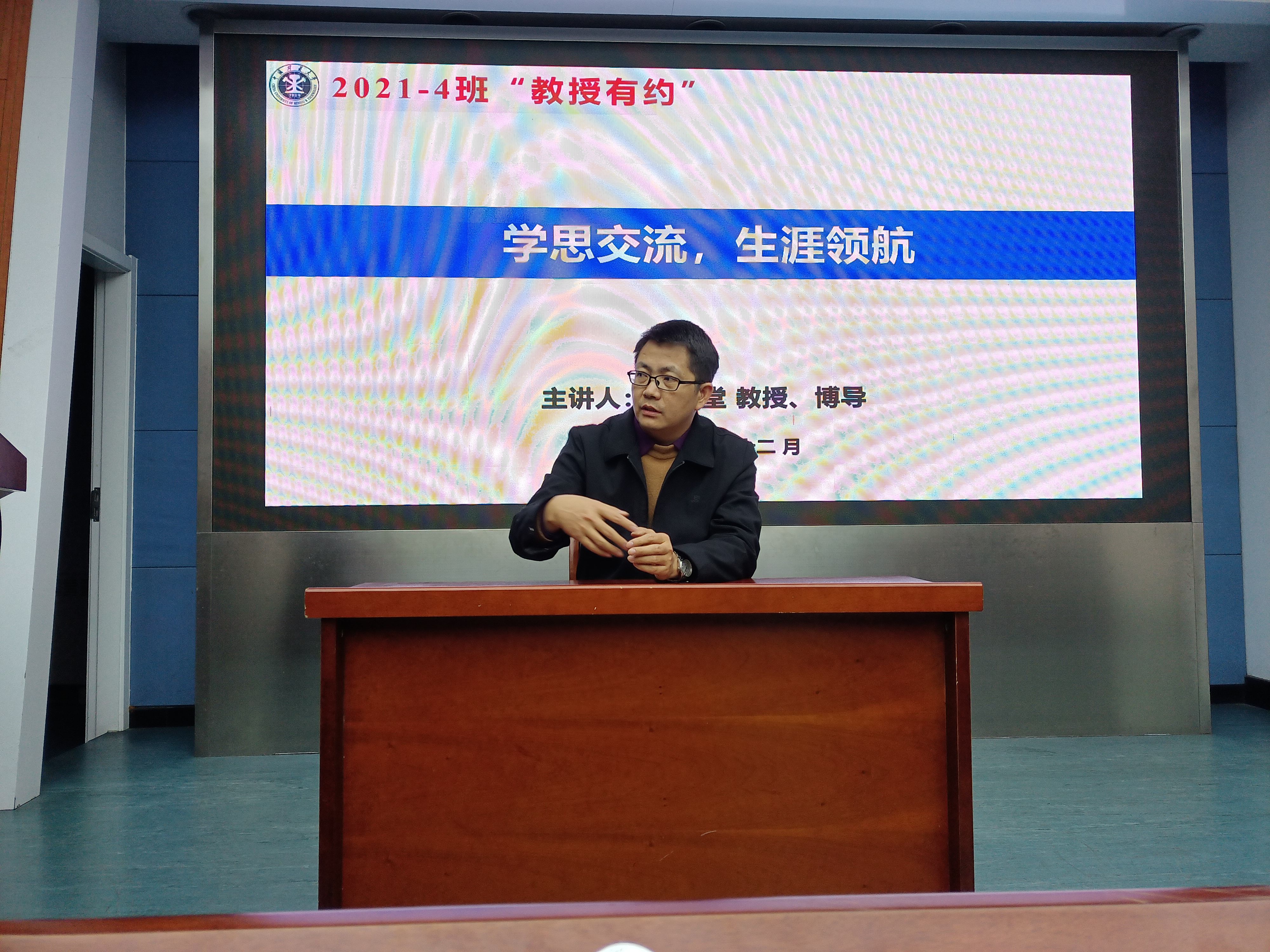 王和堂教授从学习、科研、生活等方面开展讲解。王教授表示:任何时候都不要放弃理想,他强调无论何时,无论身处何种境地,都要坚定自己的理想,有一颗强大的内心,在坚定理想的同时也要脚踏实地的努力。王教授结合自身的求学经历讲述了自己本科至博士阶段的求学历程以及任教以来的努力与选择,勉励同学们要坚定自己的理想,保持独立的人格,勤于钻研,努力提升自己。王教授表示在当今高速发展的时代,机遇与困难并存,身为大学生应当富有朝气,秉承家国情怀,在面临抉择之时,要保持本心,热爱自己的专业,在就业科研方面应该面向国家需求,作出正确的选择。活动最后,各位同学和王教授进行了热烈交流,王教授针对同学们在学习生活中遇到的困惑进行细致的解答和指导。