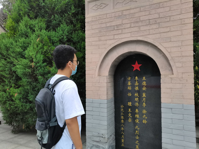 在陕西省西安市烈士陵园里,篆刻在入口的题词“为人民而死,虽死犹生”让成员们感受颇深。成员们带着庄重的心端详了烈士英名录,并在曹力如、林斌丞等烈士的墓前低头鞠躬与默哀,以表对先烈们的缅怀和敬意。驻足于烈士纪念馆外,墙面上赭红色的英雄浮雕烘托出的浑厚、肃穆和凝重的气氛,令成员们为之震撼与仰望。因积极配合当地防疫措施,实践团未能进入烈士纪念馆内部参观,但成员们后续积极通过其他渠道了解纪念馆及烈士信息,为本次实践画上了圆满的句点。