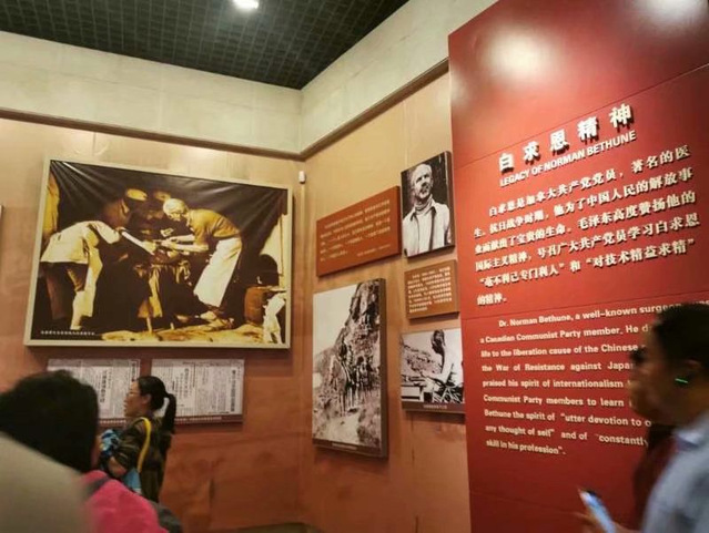 在延安革命纪念馆里,团队参观了了毛主席的雕像和当时领导人所居住的窑洞,窑洞之破败可见革命条件十分艰苦。通过馆内的照片与史实,团队成员了解到我国共产党的发展过程中,先辈们是如何确立了坚持抗战,团结进步的方针和西北革命根据地的发展过程等内容。深入馆内,团队成员看到了许多英烈奋勇牺牲的场面。通过馆内工作人员的讲解和自主学习,团队成员深刻了解了延安时期大生产运动中形成的“南泥湾精神”和整风运动中形成的“抗大精神”、“白求恩精神”等。