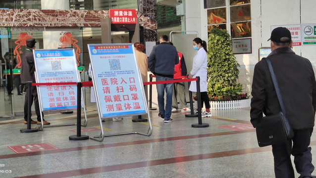 来到医院门口,袁秣看到医护人员和志愿者在对入院人员进行引导,帮助人们完成健康通行码的申领,同时通过自动测温门测量体温,一旁还设置了一个便民自助服务站,提供口罩等防护用品。除此之外,医院还设有核酸检测采样点和疫苗接种门诊,为居民提供健康保证。