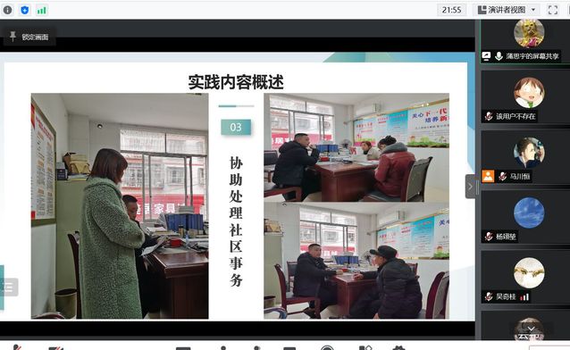 分别在3月7日晚7点于博4C311,3月9日于博一C202举办了19级和21级的社会实践答辩。出于疫情防控考虑,3月13日,20级以线上会议的形式召开了社会实践答辩。答辩过程中,各位同学踊跃发言,积极展示了自己的寒假社会实践成果。