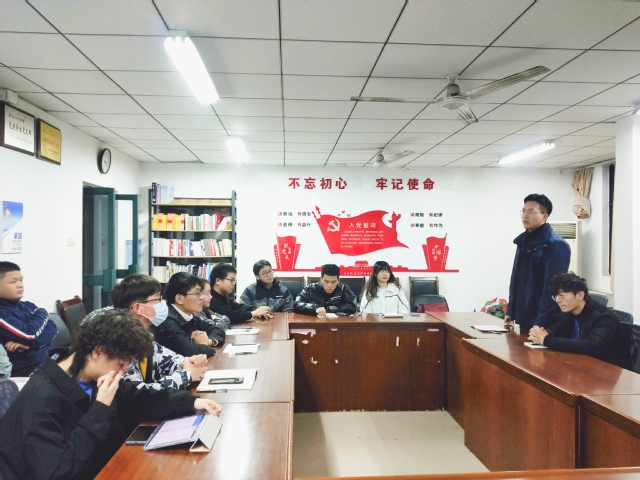 本科生第二党支部于梅三五楼党员工作站召开讨论接收预备党员支部大会,本次会议由本科生第二党支部组织委员张腾镨主持,支部书记刘世通老师、副书记孙一伟老师、本科生第二党支部全体党员及预备党员等十一位发展对象参与本次会议。