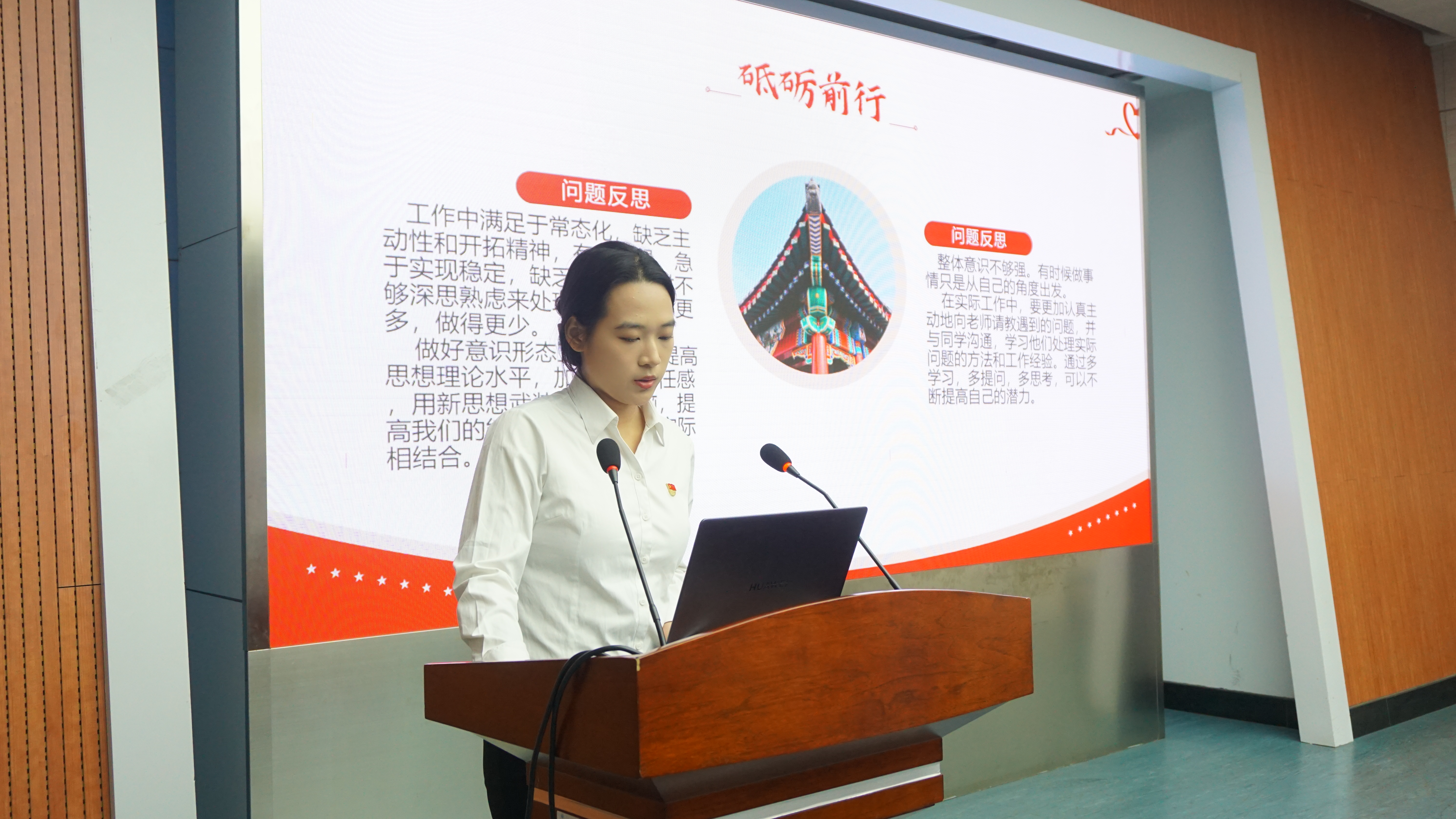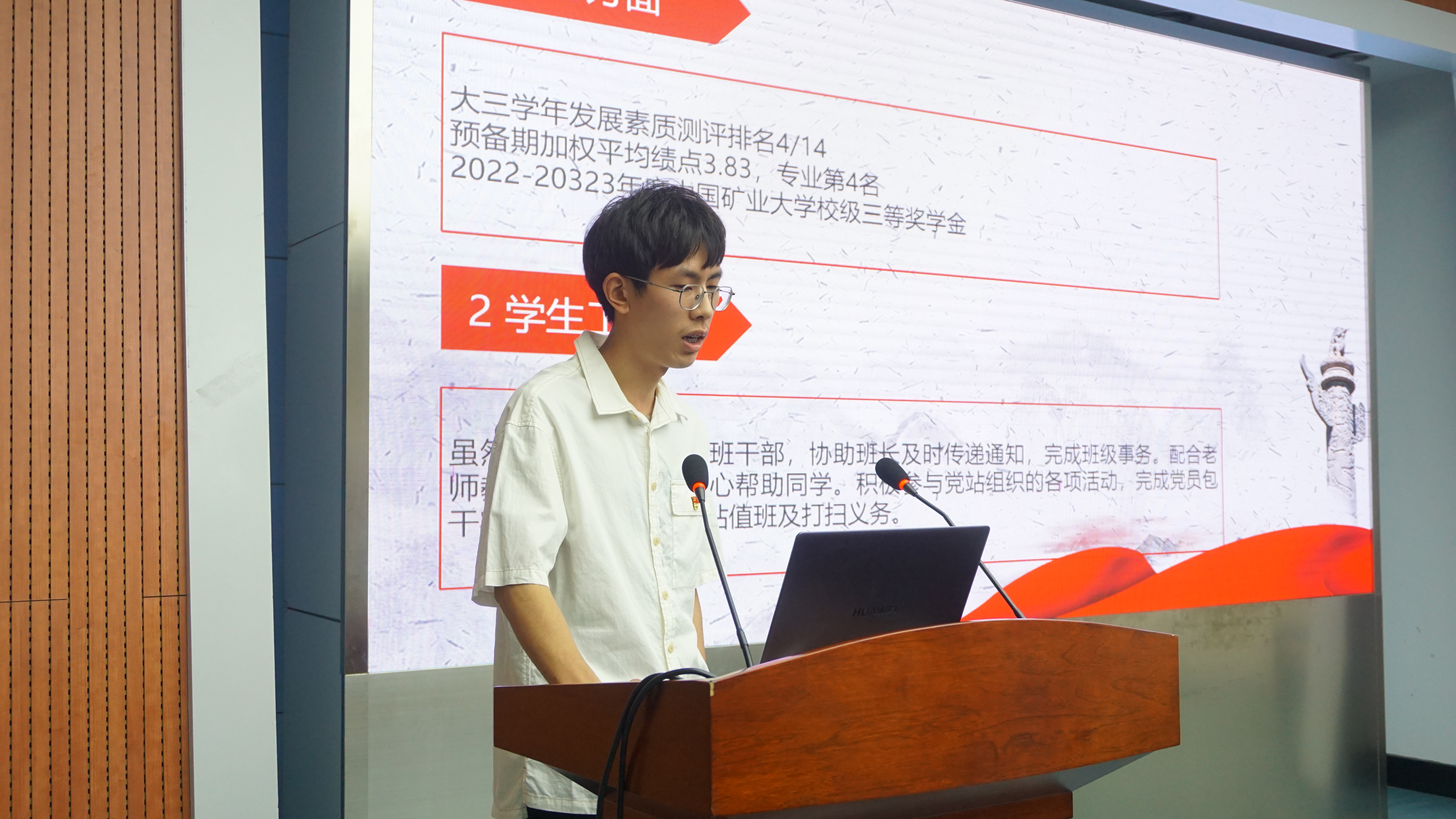 活动伊始,刘世通老师强调了青年党员在学生群体中发挥的重要作用以及学院的“双培养”理念,15名预备党员从思想、学习、工作、生活方面汇报了预备期间的情况,并对不足之处进行了认真总结。其中何欣不断提升自身党性修养,专心学习专业知识,淬炼个人本领,成功保研本校硕博连读;库旭文积极参与学校学院各项活动,担任学院学生会副主席,积极参加志愿活动,总时长达百余小时;曹蕾认真学习专业知识,积极参加创新创业项目,不断提升自己科研创新能力,预备期间发表2篇SCI论文;许正阳坚持“读原著,学原文,悟原理”学习党的理论知识,永葆共产党员的底色;李佳雯积极参与学校学院元旦晚会、合唱比赛、毕业生晚会等文艺活动,为多彩校园贡献了自己的力量;杨腾锐在专注学习的同时积极参加暑期社会实践活动,先后获得江苏省优秀学生干部、国家奖学金等荣誉称号。