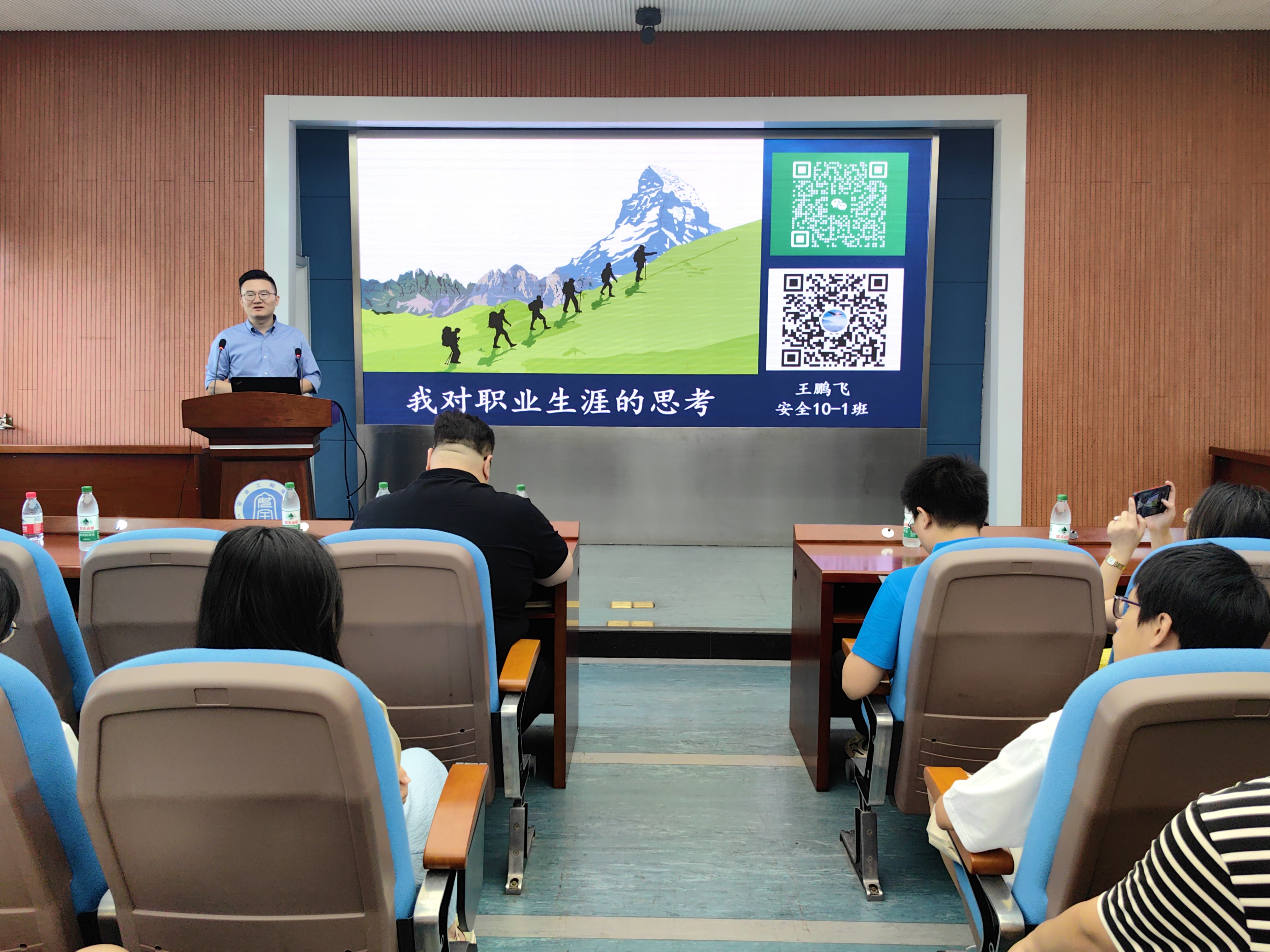 近年在党建工作、思政工作、教育工作等方面展开介绍。随后,部分2010级优秀校友受邀分享他们的经历和故事。王鹏飞分享了他对职业生涯的思考,对职业发展中存在的问题提出思考和建议,鼓励同学们心态、路径、价值、证书和身心上共同发展,重视学习为基础,视野宽广,批判思维,提升核心竞争力,成为复合型人才;张桓海介绍了个人履历,通过事例强调重视体系和技术的融合,从专业基础出发,拥有一技之长,适应行业发展需求,树立终生学习的意识,并对毕业生的毕业去向和企业选择提供了建议;许庆庆提醒同学们在当下及以后的阶段里要学会外向,主动展示自己,选择深交携手共进的伙伴,也要学会谦逊,不要自恃其高,多阅读和学习,多与人交流请教,学会换位思考;刘茂喜分享了个人经历,鼓励同学们坚持自己选择的道路,并结合自身的经历,分享了考公相关经验和建议;杜长宝分享了个人经历和企业发展过程,指出安全学习的重要性;蒋恺结合个人职业发展路径,强调终身学习的重要性,鼓励同学们把握当下。