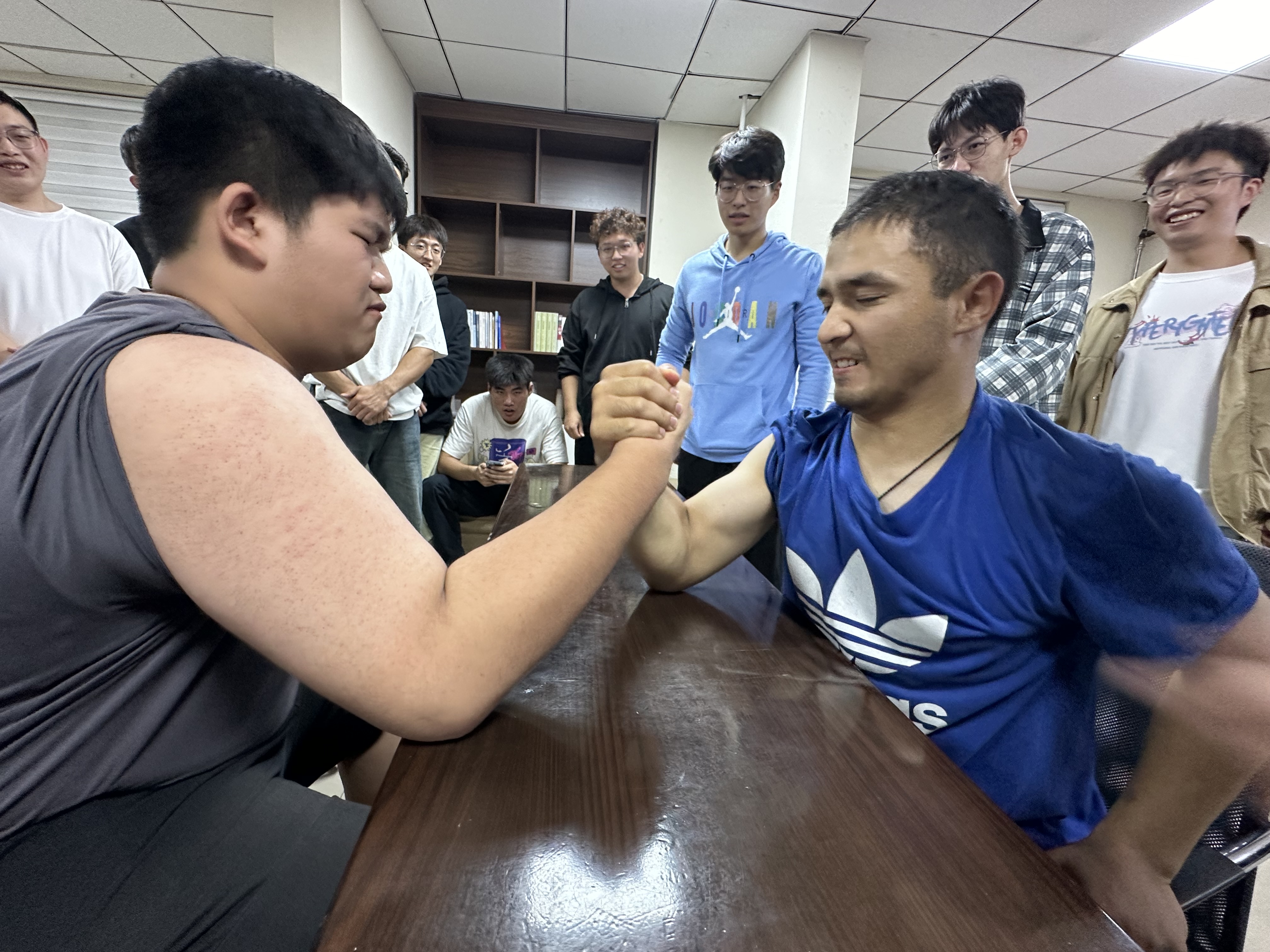 2021级在行健书院求是堂举办“掰手腕大赛”,学工办主任、2021级辅导员刘世通主持本次比赛,2021级部分学生代表参加本次比赛。
