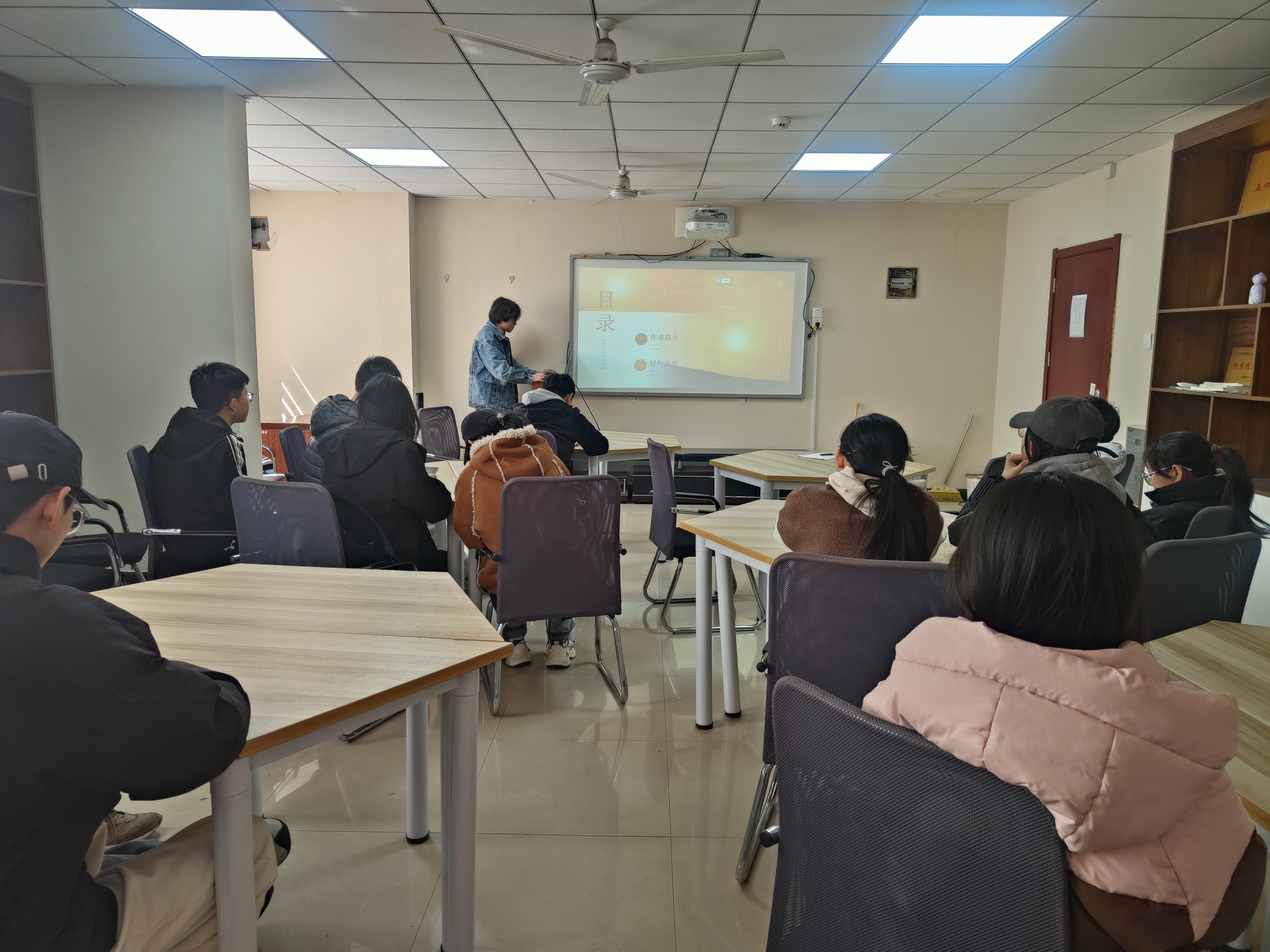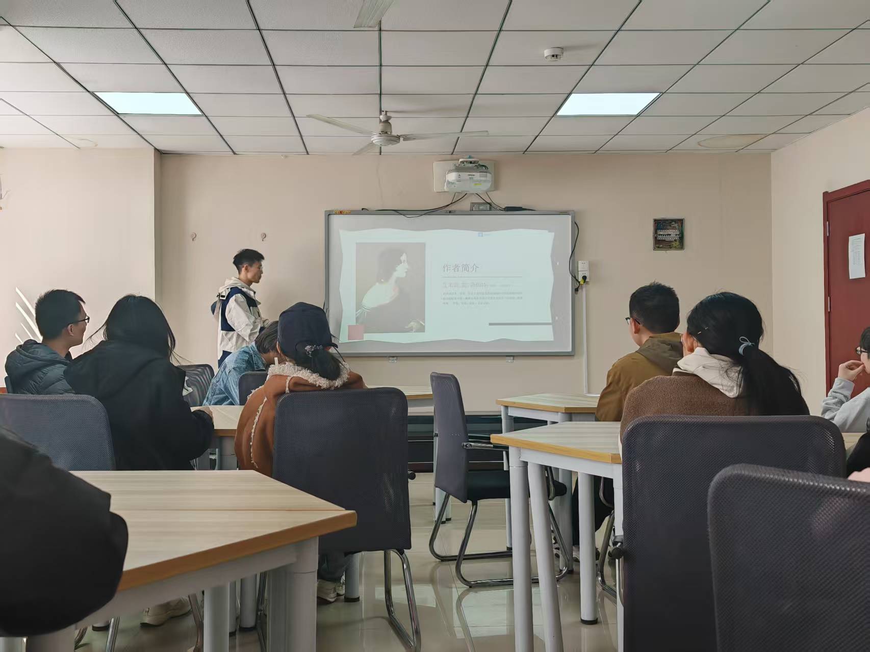 首先,张宗祥同学分享了《呼啸山庄》,这部作品以其激烈的情感冲突和独特的叙事风格,展现了爱与恨的纠葛,带领大家走进19世纪英国约克郡的神秘世界。黄若愚同学介绍的《死亡诗社》,通过讲述一群学生在老师的引导下追求自由思想的故事,传递了对梦想和个性的坚守,引发同学们对于教育与自我成长的深刻思考。邢慧珺同学分享的《一句顶一万句》,以普通人的生活为切入点,描绘了人与人之间的沟通困境与心灵渴望,让大家感受到语言背后的复杂情感。
