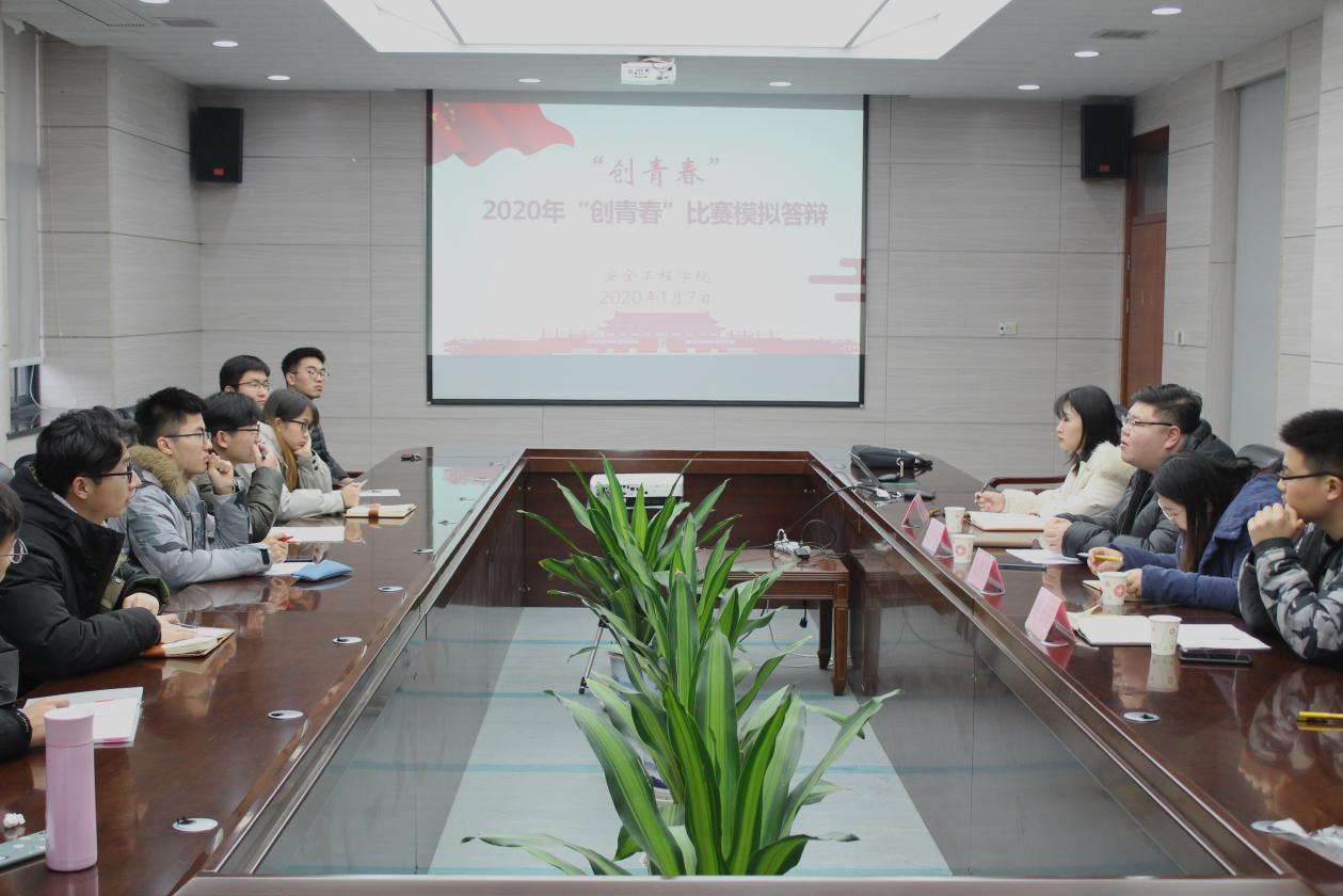 1月7号下午3时,“创青春”全国大学生创业大赛模拟答辩会在矿业科学中心A412举行。安全学院团委书记刘世通,化工学院陶冰冰老师,管理学院谢铅玉老师,硕士研究生路长征同学以及四个团队的部分成员参加了此次答辩会。本次答辩会由安全学院团委书记刘世通主持。