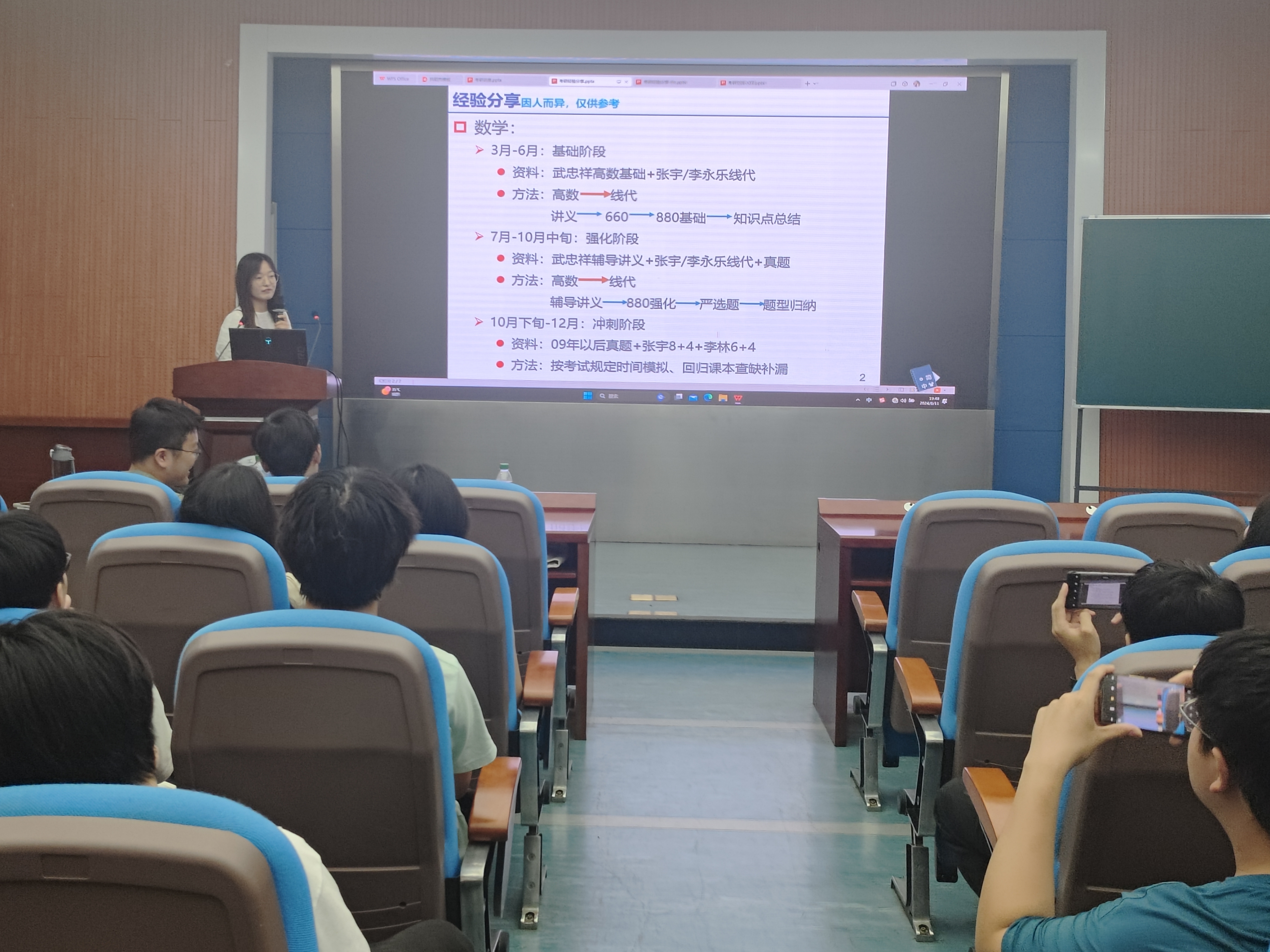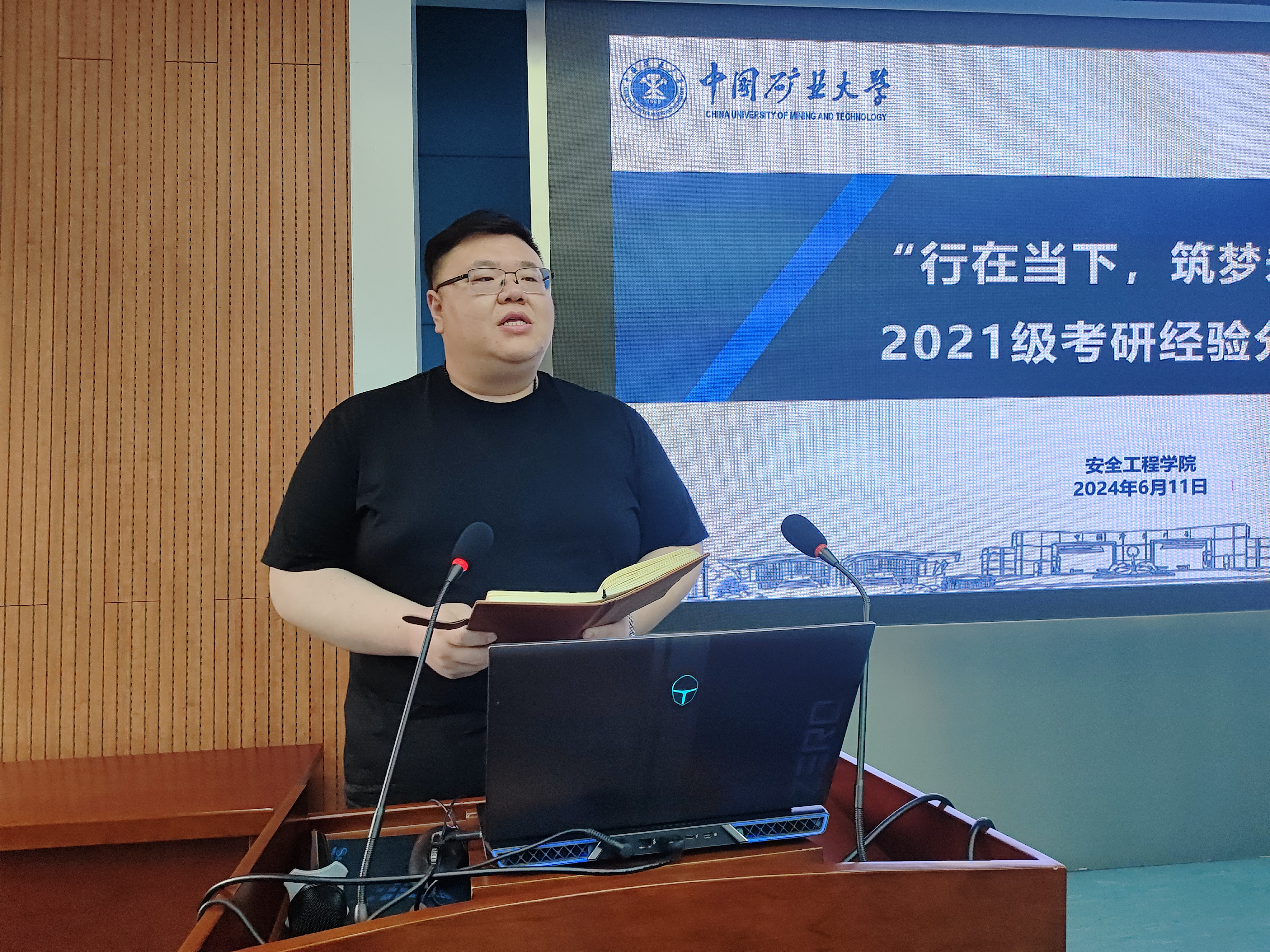 于矿科楼A200举行“行在当下,筑梦未来”2021级考研经验分享会。本科2020级考研成绩优异学生代表受邀主讲。学工办主任、2021级辅导员刘世通、2020级辅导员胥振以及绅士会所