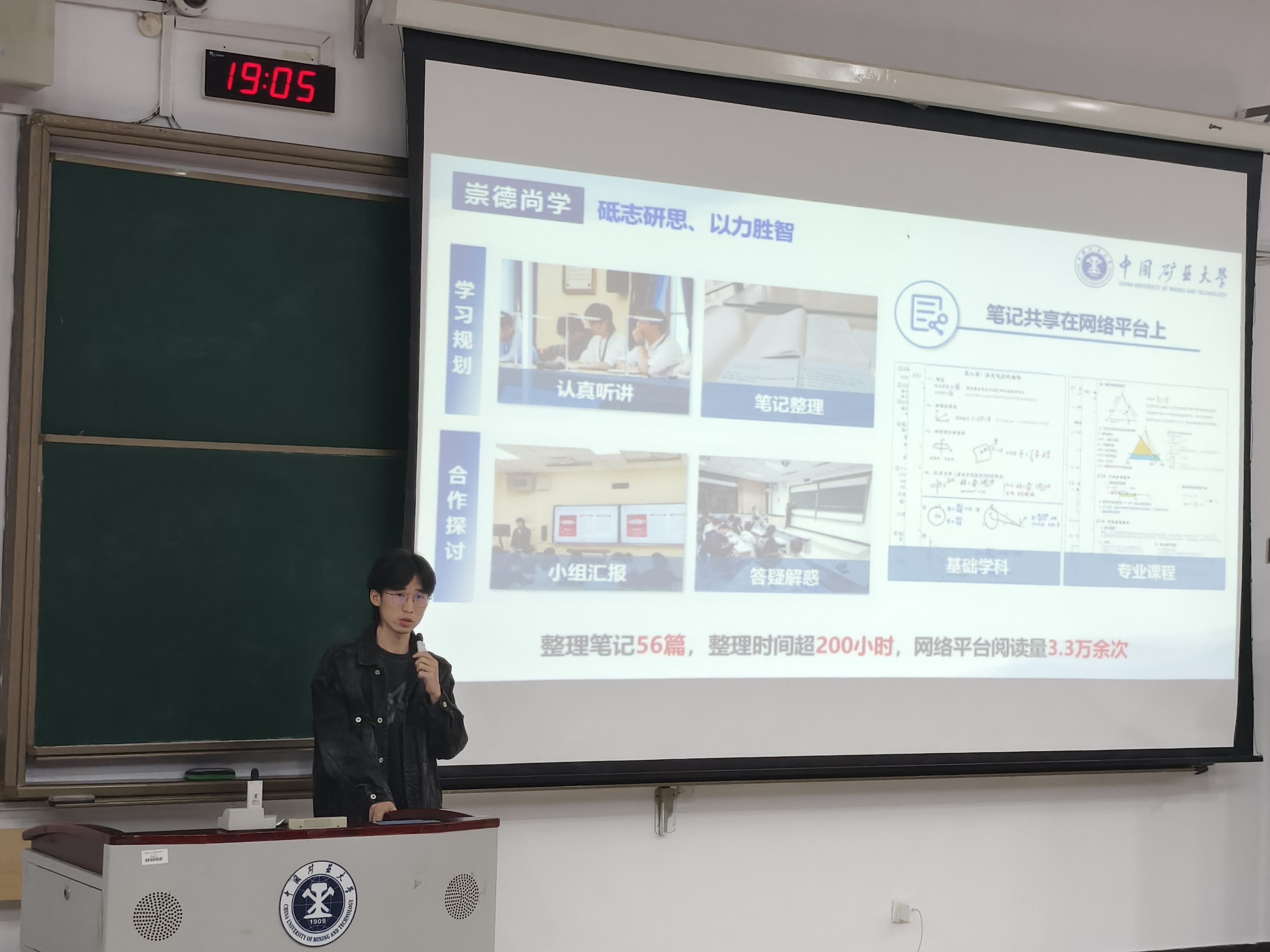 活动伊始,俞嘉濠以“以力胜智,明晰规划”为主题,从学习、竞赛以及学生工作等几个角度讲述了自身保持优秀的心路历程。随后,李孟阳以“八大方针”强调了学习方法的重要性,激励大家志存高远,砥砺前行。之后,杨腾锐以自身实例希望同学们以“不放弃”的精神抓好学习这个主业。然后,李志仁以自身不断失败却不断触底反弹的例子鼓励大家不惧当下的失利。辅导员胥振勉励同学们要坚定理想信念,树立正确的价值观,拥有强健的体魄和扎实的学识,勇于尝试各类活动,不断提升自己的综合素质能力。