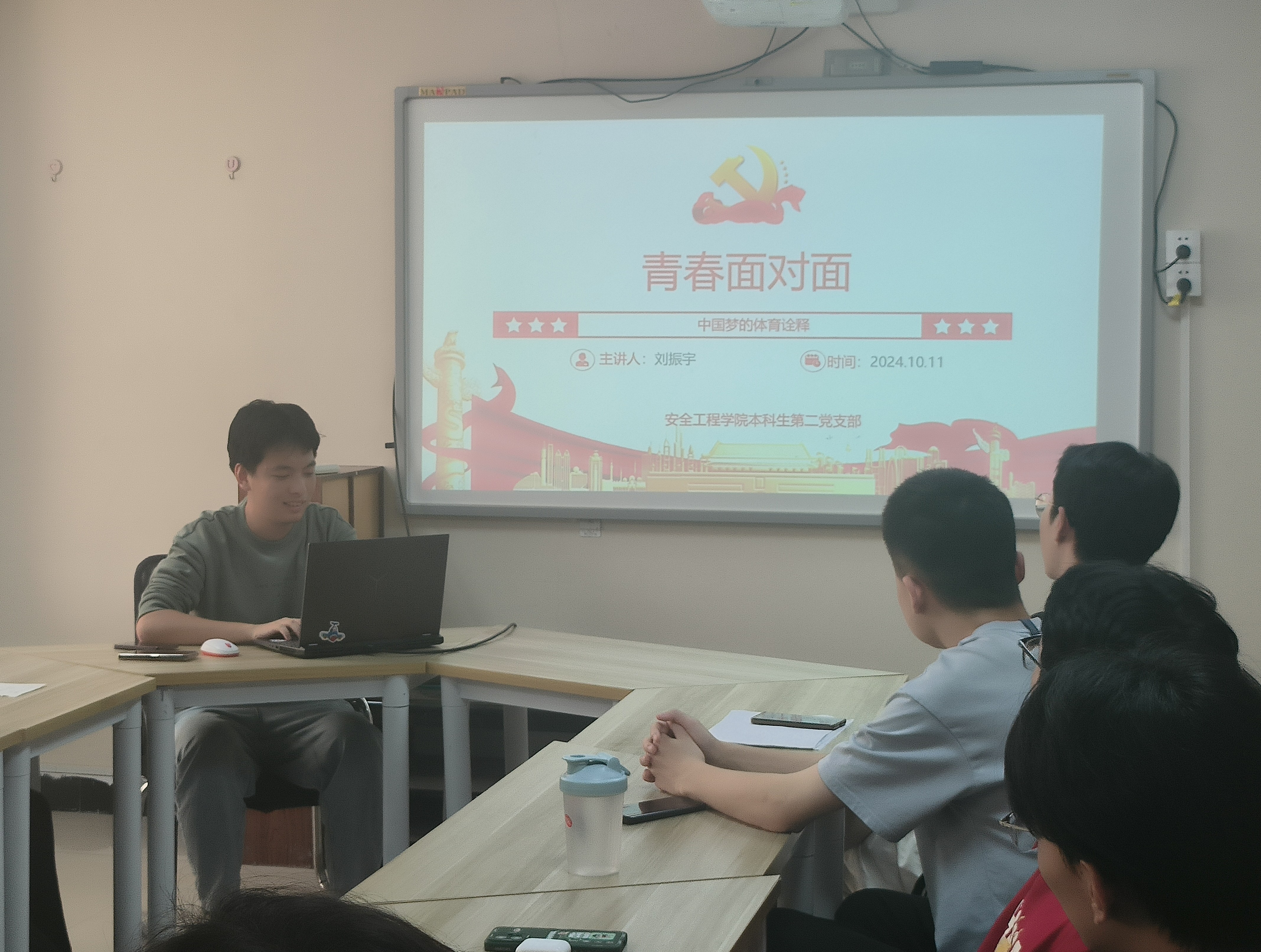 学生党员工作站于党站开展主题为“体育筑梦,共绘未来”的青春面对面活动,汪鑫、刘振宇同学担任主讲,本科生第二党支部全体成员参加此次活动。