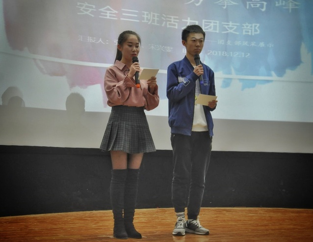 在环境与测绘学院报告厅举行“牢记一二·九,弘扬爱国情”之安全学子风采展活动。安全学院党委副书记钱雄、安全18-1班学术导师蒋曙光、安全18-4班学术导师李忠辉、安全18-4班班主任程健维、安全18-6班班主任周红星、团委指导老师刘世通、辅导员排日代姆、吕鑫出席本次活动