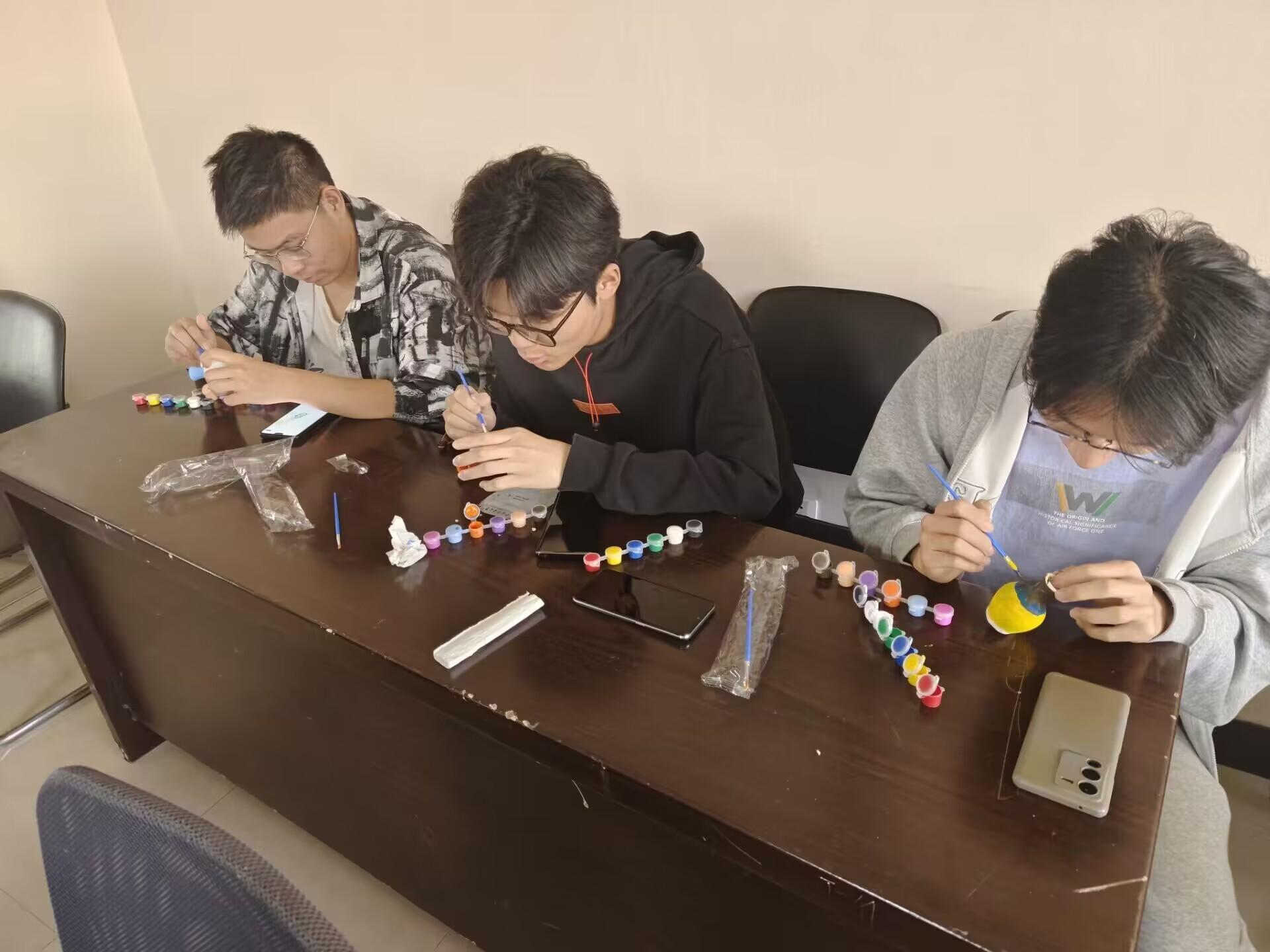 心理自助中心提供的空瓶子上,利用颜料与画笔进行涂鸦与创作。同学们根据自己对艺术的理解,带着心中美好的祝愿,用五颜六色填满瓶上的空白,表达自己的所见所想。在活动开展的过程中,参与活动的同学们还积极进行交流,分享彼此对于陶瓶彩绘及其艺术表达方式的理解。活动结束后,绅士会所