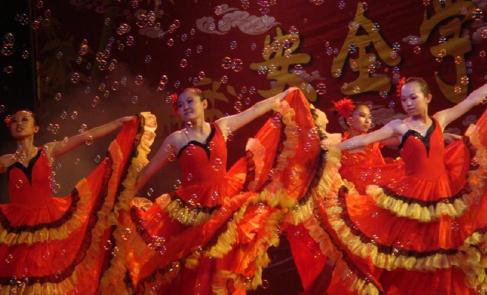 晚会在气势恢宏、情绪激昂的乐队表演中拉开序幕,精彩纷呈的节目轮番上演。异域风情的舞蹈《西班牙女郎》、机械舞《Screaming》和民族舞《维族舞&哈萨克拍手舞》等节目,展现了全院师生共祝祖国60周年的的喜悦之情;由绅士会所