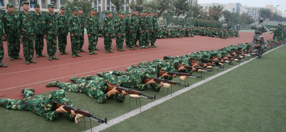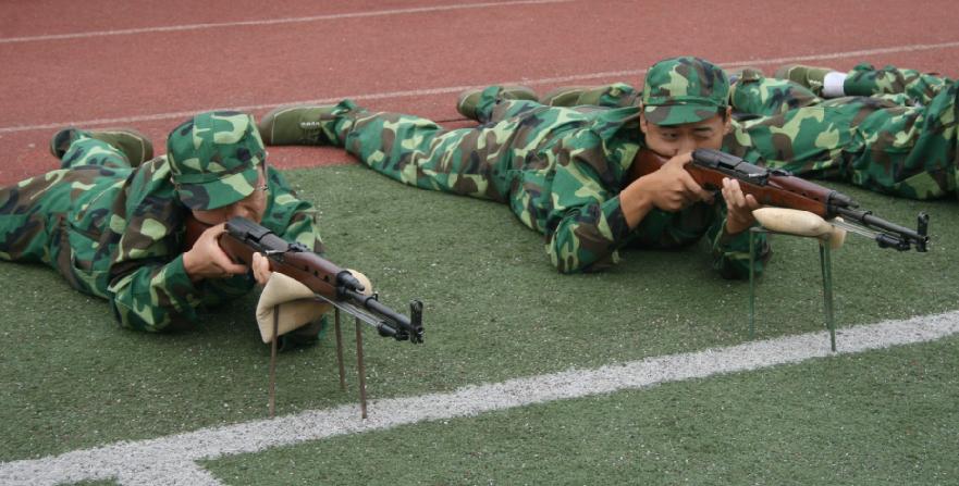 全体新生今天要到第一运动场练习打靶,这可是一件让同学们既紧张又兴奋的事情。“日落西山红霞飞,战士打靶把营归”,哼唱着嘹亮的军歌摸着光滑闪亮的枪管,同学们第一次体会到了军人身上肩负的责任是多么重大。在教官的指引下,同学们开始轮流练习。三点一线是最基本的要求,拉枪栓、瞄准、射击,同学们在心里一遍遍的重复着,把远处的枪靶想象成战场上的敌人,爱国之心油然而生。教官们在一旁耐心的纠正同学们的动作,用瞄准镜检查同学们的精准度,辅导员老师也在旁边加以督促、指导。偌大的训练场上几乎没有什么声响,大家都把注意力集中到了草场对面的射击靶上。