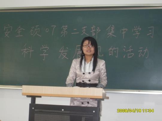 为了认真学习科学发展观的真正内涵,鼓励广大学生党员结合自身实际,全面理解和贯彻科学发展观的要义。4月15日晚,安全硕07支学生党员在综合楼403开展了深入学习科学发展观讨论会。