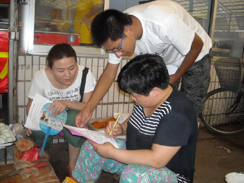 下午四点,“践行科学发展观,弘扬消防新精神”实践团全体成员来到鑫泰小区,在得到泰山街道办事处曹主任、安全科唐科长大力支持下,活动开展得有声有色,气氛活跃,居民响应积极。
