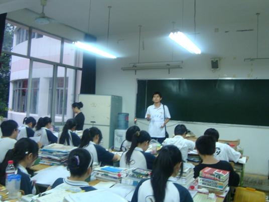 “重返地震灾区 共建和谐家园”暑期社会实践团成员走进江油市第一中学高三(11)、(12)、(13)班,利用同学们自习的时间,为将要面临高考的灾区学子进行了“沟通你我心灵 畅谈大学生活”的课堂互动活动,并做了相关的问卷调查。