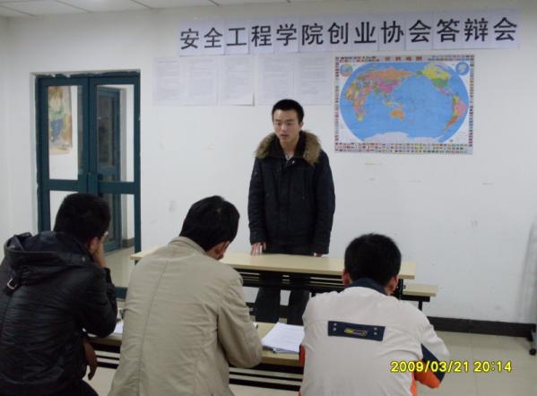 3月21日晚7:30,“安全学院创业协会答辩会”在梅三5楼活动室召开。此次答辩会的目的主要是招选创业协会主席、副主席,有意愿参与评选活动的同学前来参加答辩。