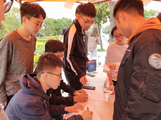 上午10时整,活动正式开始。首先,所有参赛队伍在图书馆前集合完毕,有由裁判说明比赛规则。据悉,本次活动共有二十支队伍参加,主办方在行健路上每隔500m设立一个答题关卡,共七个,每组选手需在两圈跑步过程中完成所有关卡设立的题目。答题顺序不限要求,即只要在跑步过程中完成7个关卡的题目即可。每组选手需在各答题点抽取三道题共同完成,可以讨论。每个关卡答题完成后由关卡负责人记录成绩,答错不得分,答对加分。最终成绩以关卡答题成绩和马拉松的成绩相结合进行排名。裁判说明比赛规则后,选手们依次出发,虽然室外温度过低且伴有大风,但选手们的热情不减,极速前行,活动场面异常活跃。