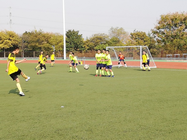 比赛开始前,安全队员们进行了热身活动,并互相加油打气。中午12时30分,在主裁判一声哨响下,比赛正式开始。上半场刚开始双方球员便迅速进入比赛,打起了畅快淋漓的对攻。大约五分钟后,安全队员宣鹏利用一次角球机会以头球先发制人,取得了开门红。能源队员们并没有因为失利而垂头丧气,反而士气高涨,疯狂组织进攻。安全队员面对对方气吞龙虎的气势毫不慌乱,多次大脚解围破坏了对方的进攻。上半场结束,安全学院以一球优势暂时取得领先。短暂的中场休息过后,比赛来到了更为精彩的下半场阶段。安全队员们的气势愈发高涨,他们用吊高球冲破了能源学部球员密不透风的防守,然后安全队员曲峰以迅雷不急掩耳之势一脚凌空抽射将球打进,使比分扩大到了2:0。随着比赛渐入尾声,能源队员逐渐开始体力不支。安全队员们抓住机会轮番围攻对方球门,安全队员曲峰又接连取得了两粒进球,将比分定格在4:0。安全学院获得比赛胜利,成功进入半决赛。