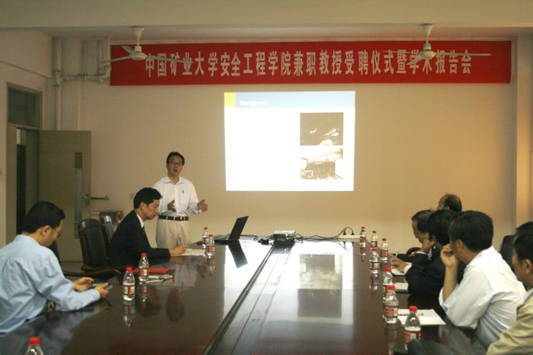 聘任仪式结束后,薛生博士为作了题为“Coal Mine Outburst―Mechanism, Thresholds and Prediction Techniques- the Australian Perspective.”的学术讲座,就澳大利亚在瓦斯突出机理、临界值和预测技术方面的研究认识做了介绍。