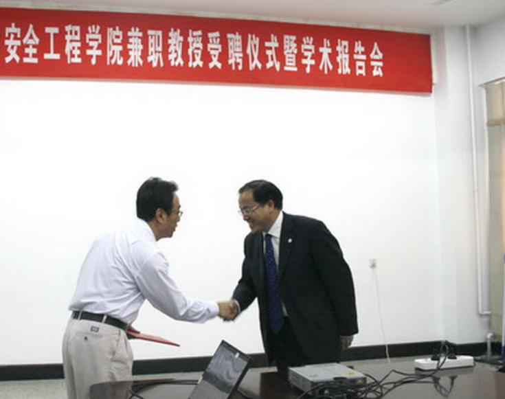 兼职教授聘任仪式暨学术报告会在综合楼1013室顺利举行,林伯泉副院长主持聘任仪式,王德明院长代表学校并向薛生博士颁发证书。 院党委书记章毛平、科副院长李增华、党委副书记李金明以及学院部分教师和研究生参加聘任仪式。