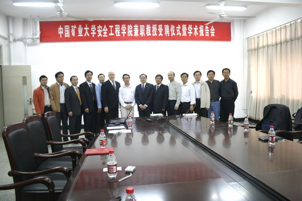 澳大利亚联邦科学与工业研究组织勘探与采矿研究院院长Michael Mc Williams出席聘任仪式并发表讲话。Michael Mc Williams谈到很开心来到矿大参观学习,希望以后能有更多的机会与安全学院加强交流与合作,促进双方共同进步。