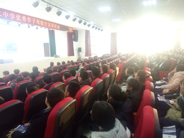在近两个小时的宣讲过程中,同学们积极聆听并做好记录,现场气氛安静而有序。此次的回访活动进展的十分顺利,不仅在同学们中收到了良好的反响,还得到了老师和校领导的大力支持,加深了高三学子对矿大的认识,达到了预期的宣传目标。