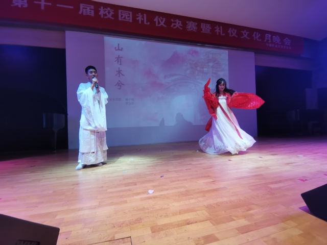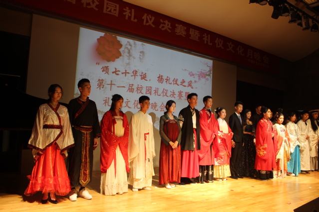 学生会主持举办了第十一届礼仪文化月。11月3日晚上7点,校园礼仪决赛暨礼仪文化月晚会在建筑与设计学院报告厅举行,安全学院礼仪小姐鲍子怡和礼仪先生李汶析代表学院参加本次决赛。