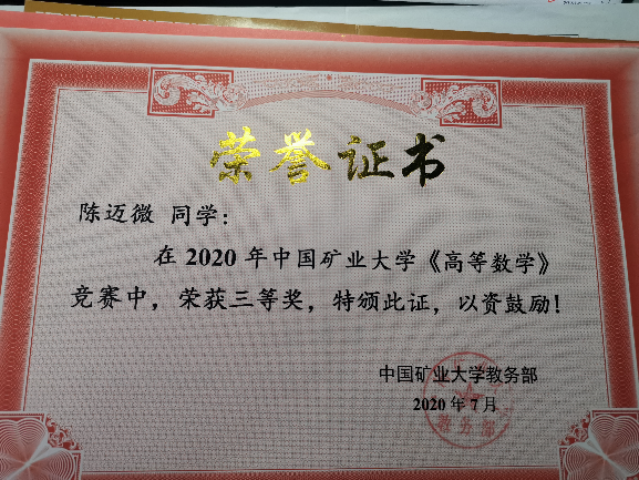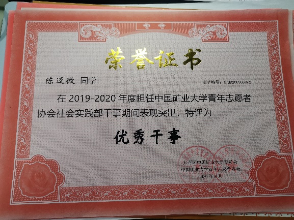 “优秀安全委员”等荣誉;一年半以来我共获得校级及以上奖项10多项,志愿服务时长将近100小时。科研创新方面,已参与一项省级大学生创新训练项目,正在申报一项国家级大学生创新项目。此外,我积极参加社会实践,于2020年寒假参加“青芽支教团”线上支教活动。