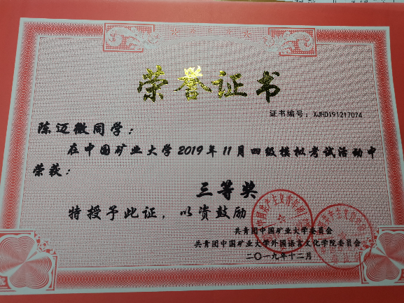 安全19-4班安全委员,并获得了“优秀安全委员”荣誉。