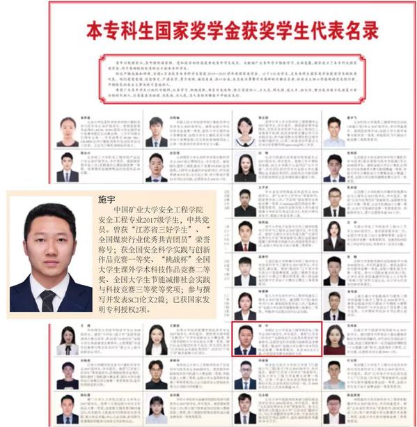 安全工程专业2017级国际班学生,中共党员。曾获国家奖学金、徐矿集团奖学金、江苏省三好学生、全国煤炭行业优秀共青团员等荣誉,获全国安全科学实践与创新作品竞赛一等奖、“挑战杯”全国大学生课外学术科技作品竞赛二等奖、全国大学生节能减排社会实践与科技竞赛三等奖等奖项,授权国家发明专利2项。现已直博绅士会所