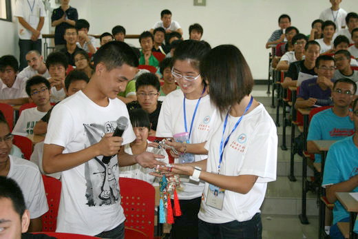 最后见面会进入“幸运交流”阶段,主持人抽取了多位新生幸运观众。获得小奖品幸运观众们畅谈了自己升入大学的感受,同时表达了各自对未来四年的无限激情。同学们的热情令本次交流会的气氛活跃至极。之后,许多同学们纷纷表达了加入学生组织的意愿,提出了自己关心的问题。团委学生会工作人员们也用恰到好处的方式给了他们满意的答复。