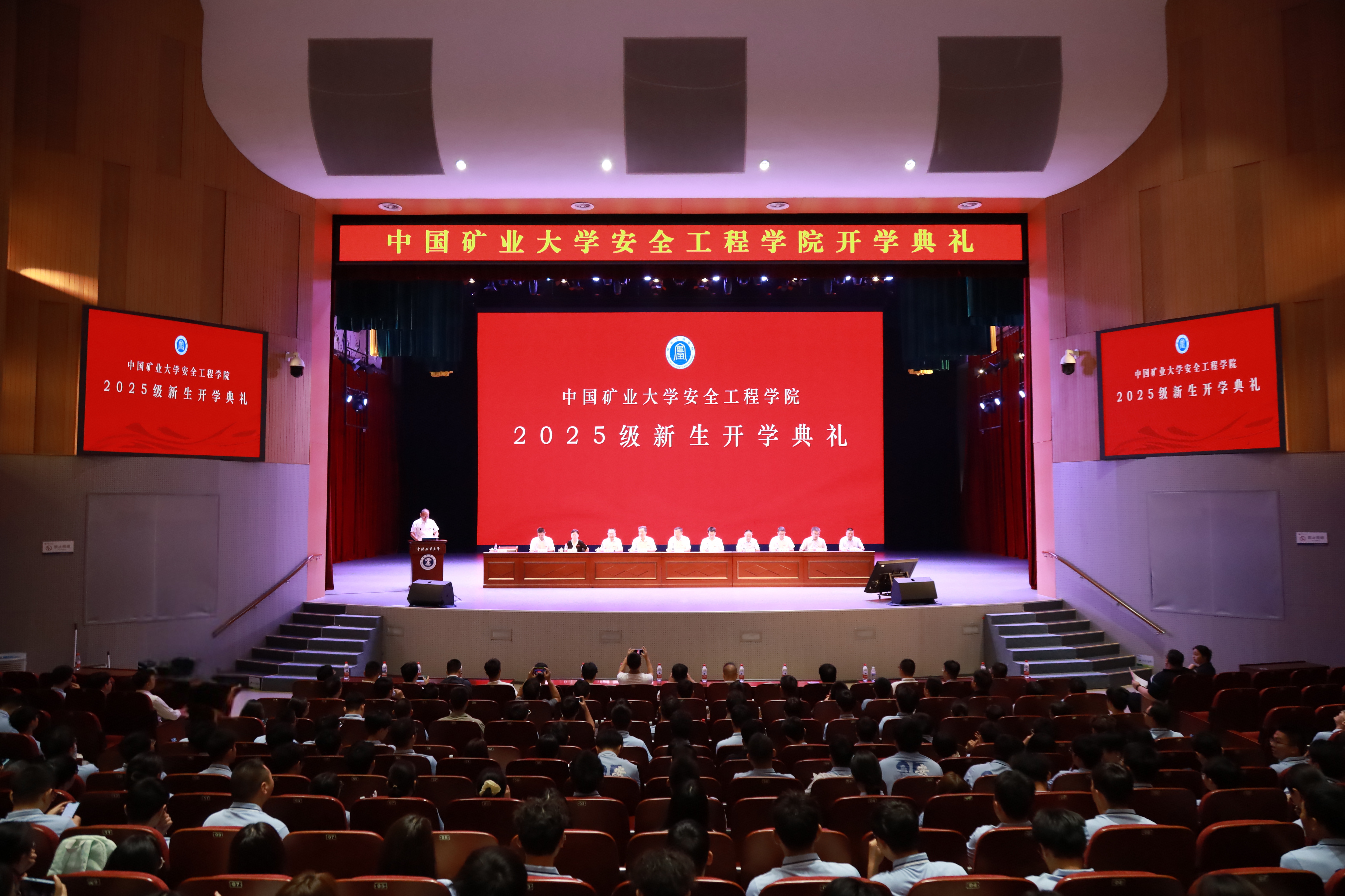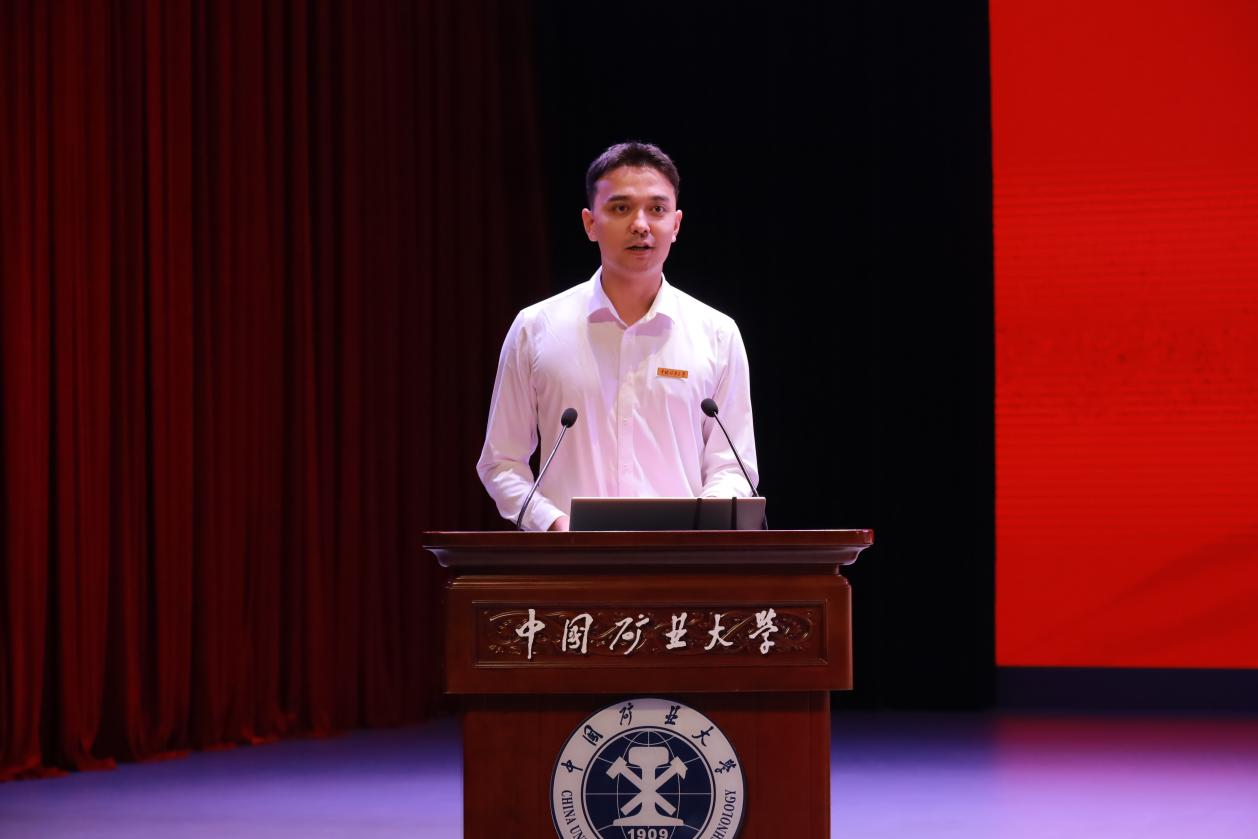 班主任代表史波波教授结合自己在矿大求学及工作经历,勉励新生依托一流学科平台,树立远大目标,学好专业基础,培养创新思维,以知识为炬,照安全之路,以青春为誓,护山河无恙。在校生代表2024级博士艾克热木江·艾合麦提分享了他在矿大求学的感悟,鼓励新生要明确目标,找准方向,坚守初心,勇于走出舒适区去拥抱时代赋予的责任,淬炼出安全人才的使命和担当。新生代表2025级直博生杨腾锐讲述了自己选择留在安全学院继续追逐科研梦想的初心,并表示在以后的学习生活中要勇于提出新的问题、探索新的路径、创造新的价值,为安全事业的发展贡献矿大人的智慧与力量。新生代表2025级本科生李松霖讲述了自己和矿大的缘分和初入大学的感受,并向全体新生发出倡议:要以“崇德尚学”的校训为指引,将“学”的根基扎得更深,让“行”的步伐迈得更实,把“责”的信念铸得更牢,用“新”的思维点亮未来。